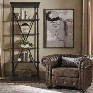 Weston Home Cabana 5 Shelf X-Back Wood and Metal Bookcase, Black