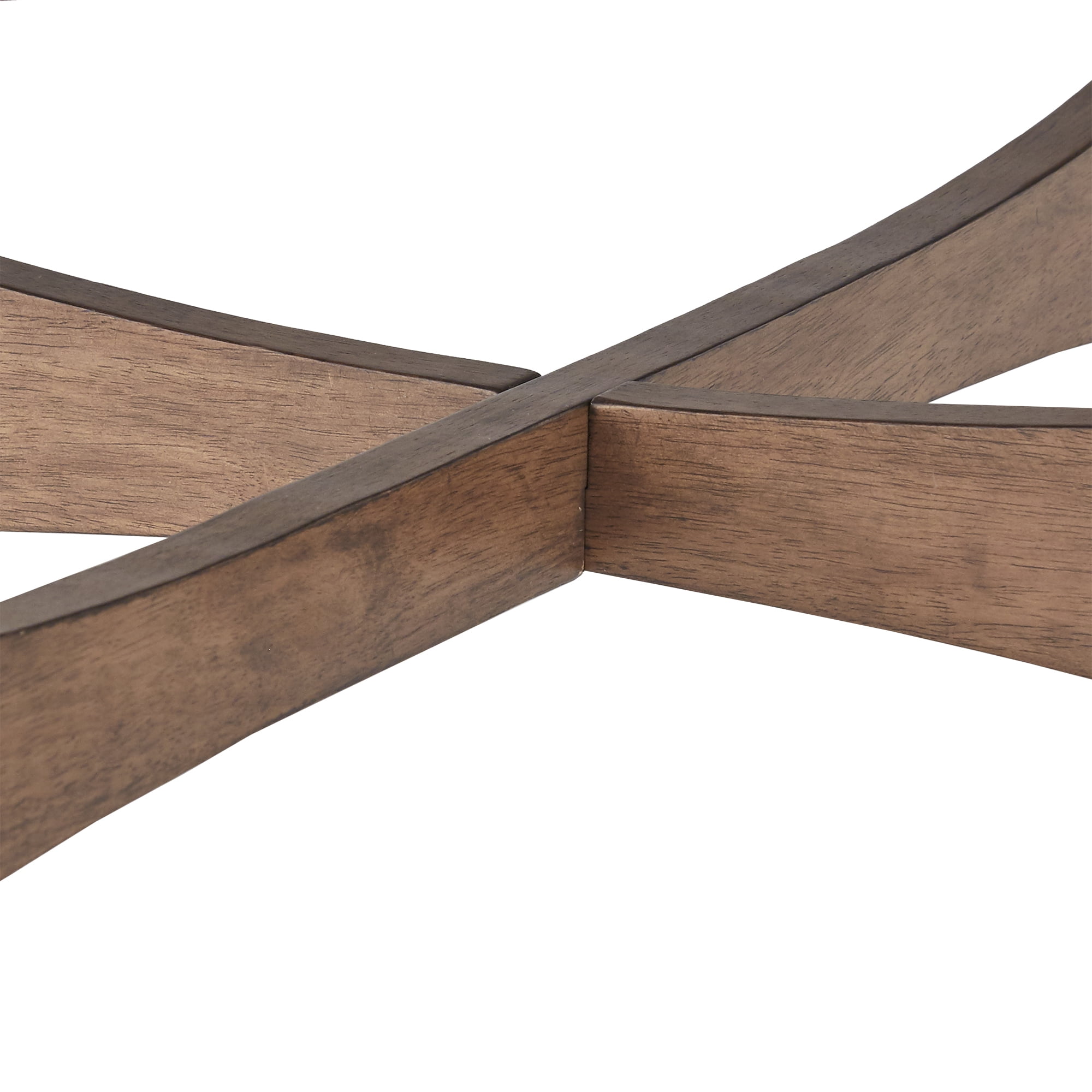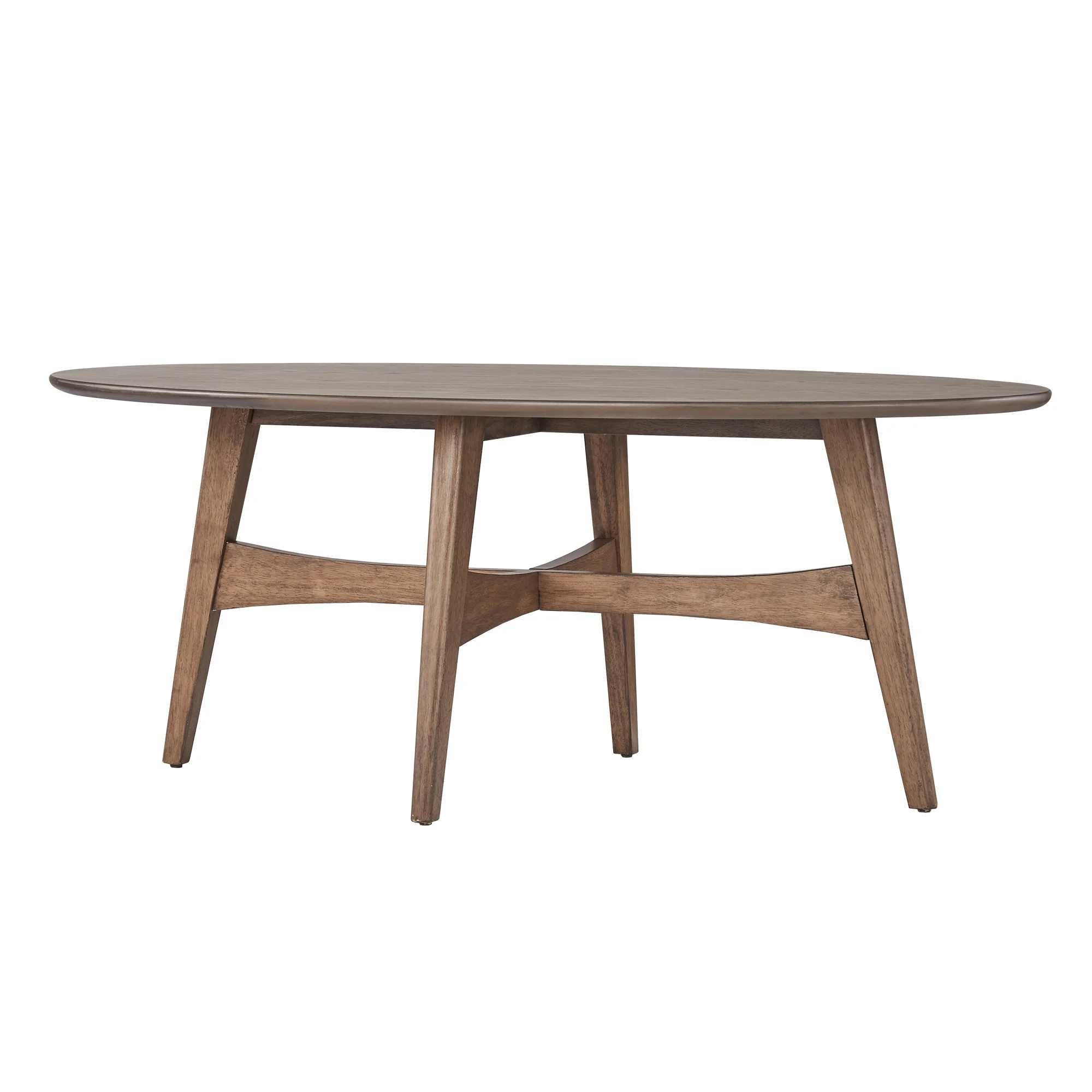 Bring your living room into the modern day with the HN Home Stewart Mid-Century Modern Oval Wood Entryway Coffee Table. This oval coffee table has sleek, simple lines that naturally garner attention and helps you anchor the rest of your furniture. Thick rubberwood solids construct the frame, topped by premium veneers and your choice of available finish. Angled legs support the exaggerated top, joined by X-shaped stretchers.