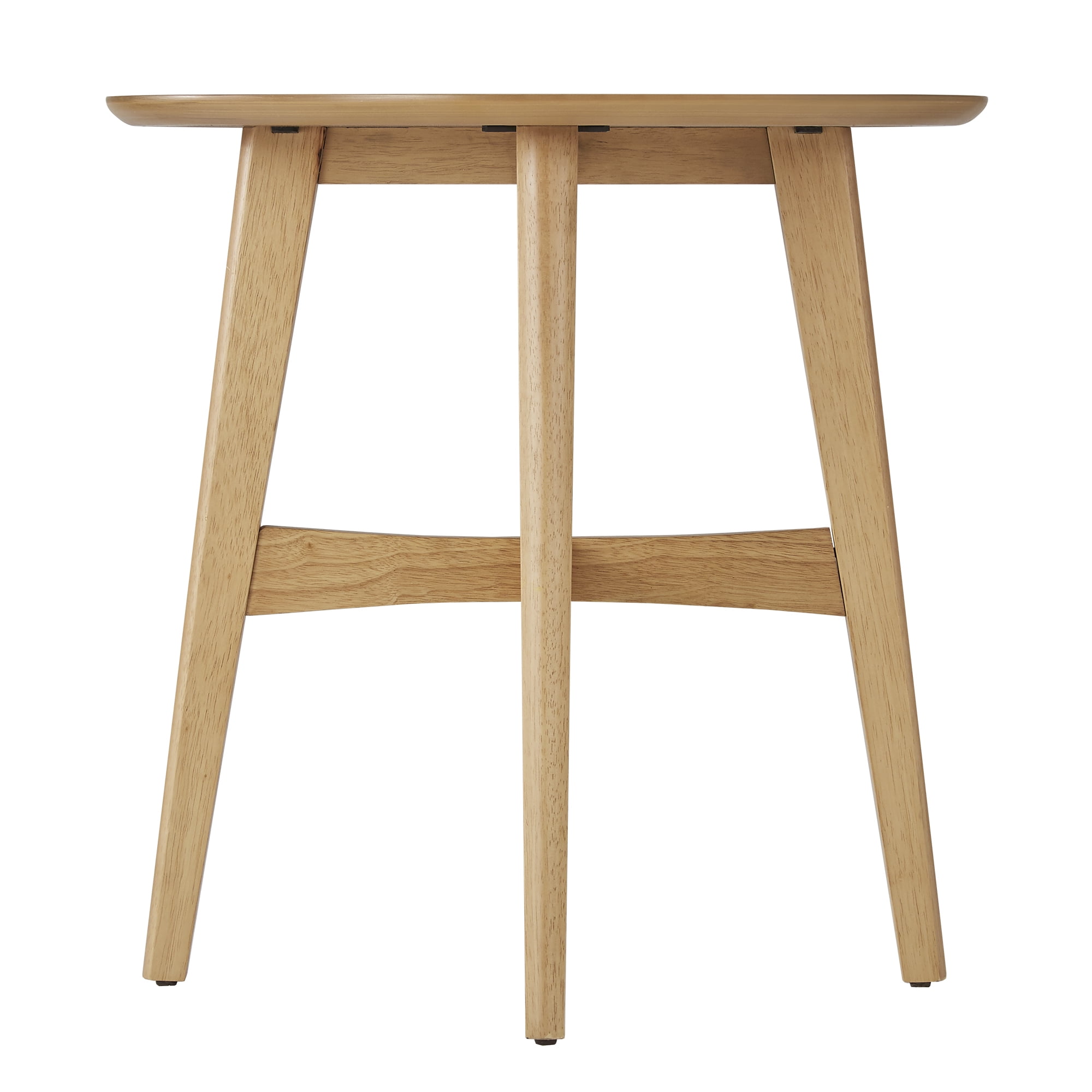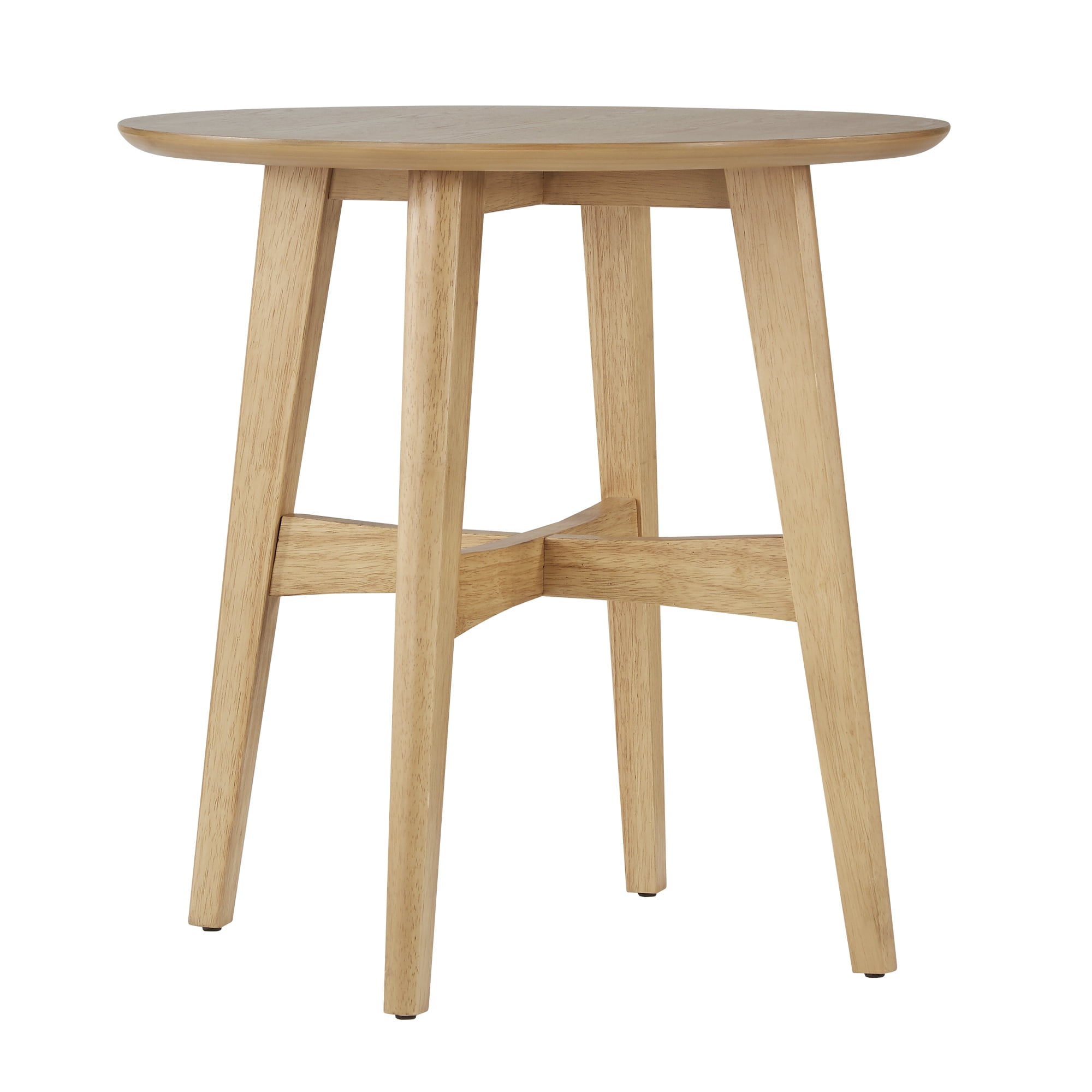 Give your room a modern pep-talk with the Weston Home Carole Round Wood Modern End Table. This round end table has a round spillover top with four angled, tapered legs. The legs are united by this cross stretchers. Solid rubberwood and engineered wood constructs the frame, topped by fine veneers. Choose from the available finish options. This great Mid-Century style end table will make a smart addition to any home decor design, perfert for living room, bedroom or family room.