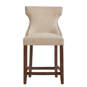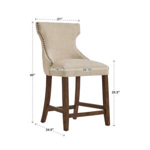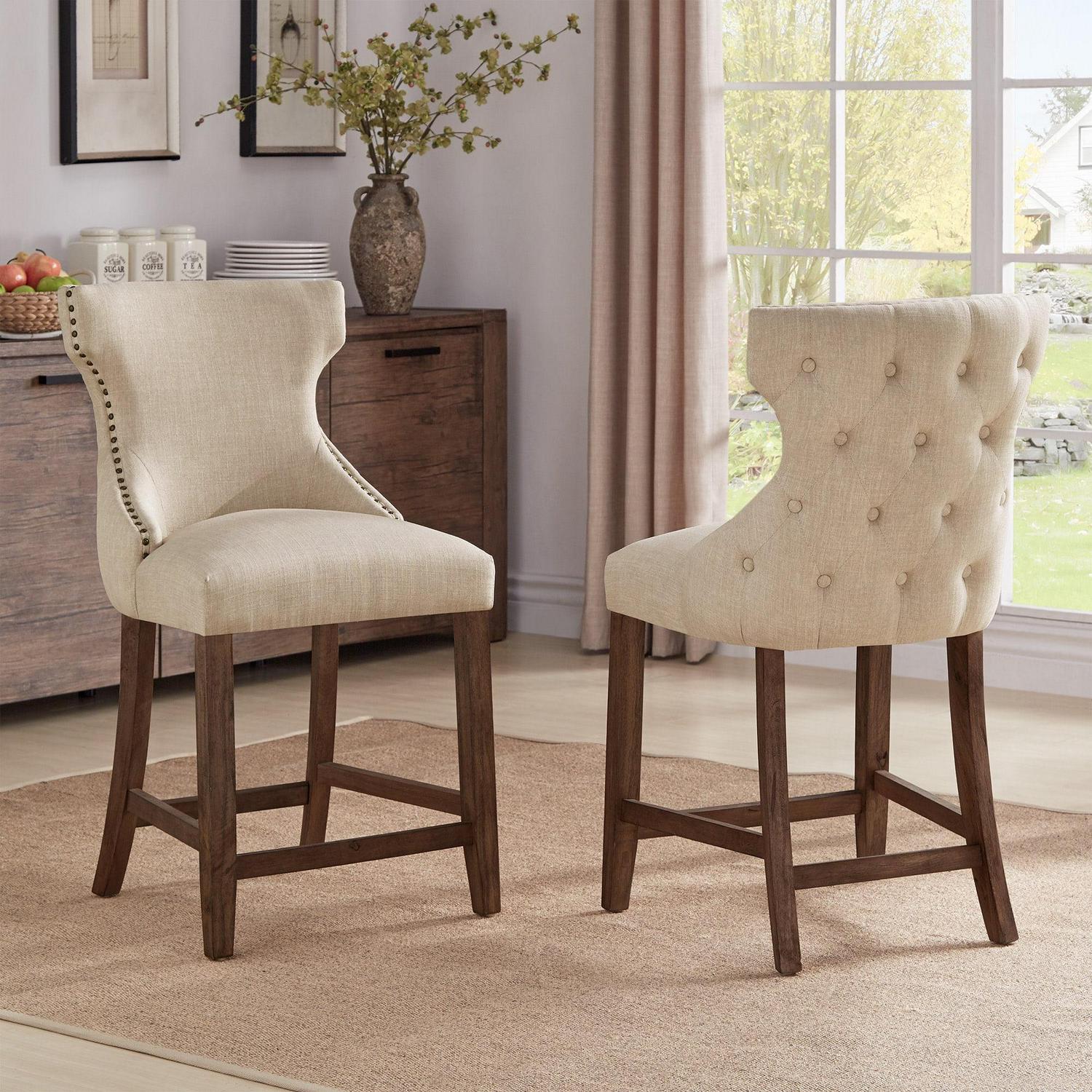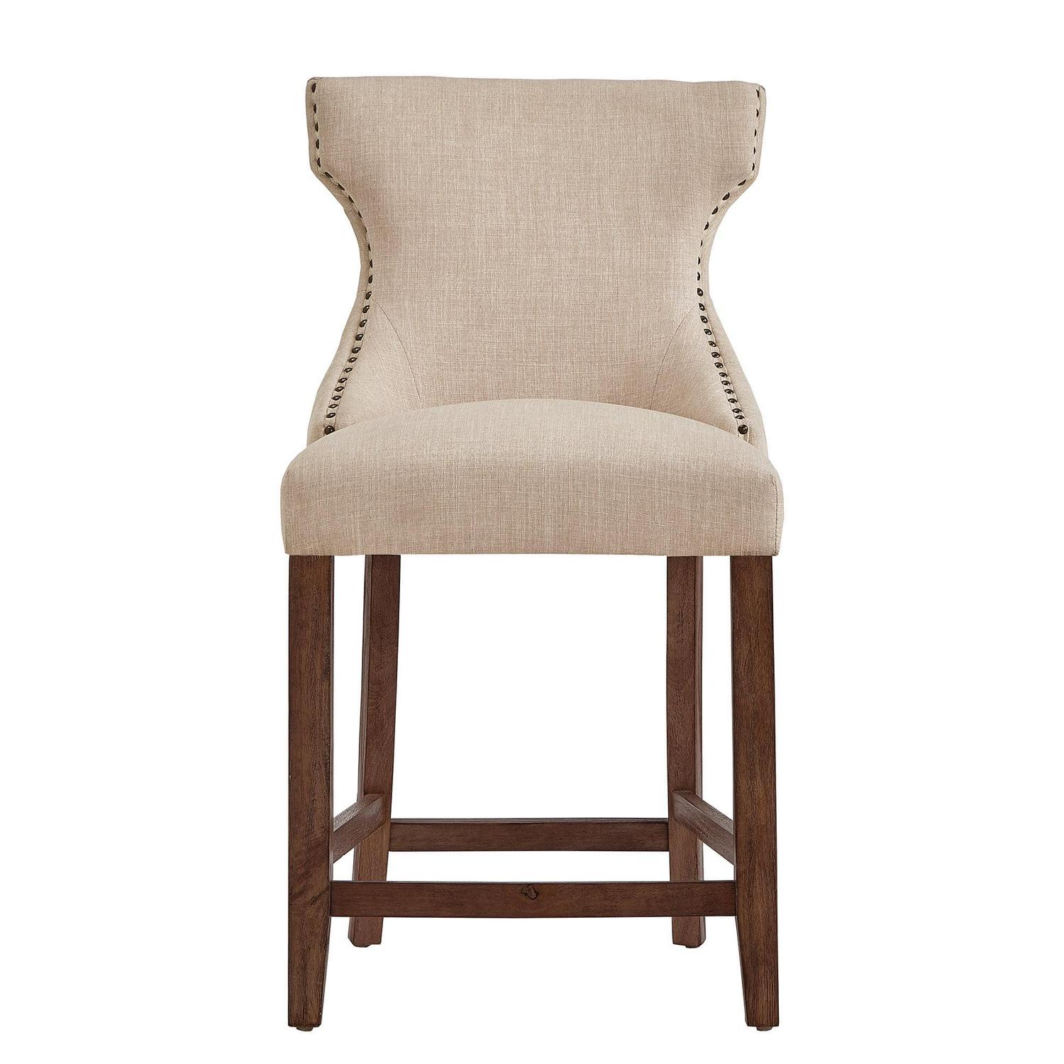 Weston Home Clarice Nailhead Trim Linen Upholstered Counter Height Stools, Set of 2, Beige Linen