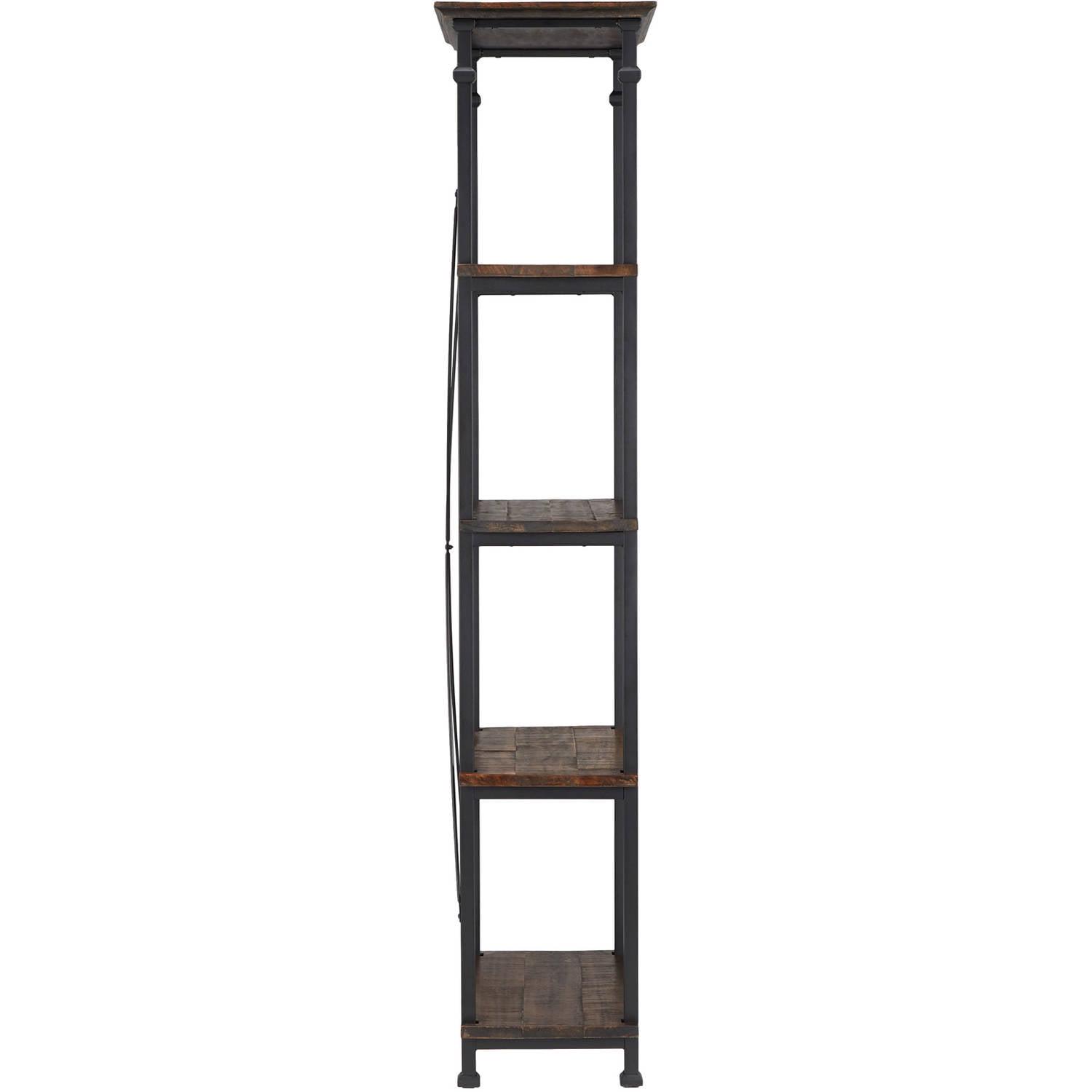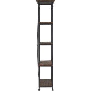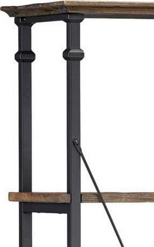 This Weston Home Bookcase, Metal Supports has a unique metal and weathered wood design giving your living space a trendy, vintage-industrial look. With its clean lines, sturdy metal frame, and wooden surface this item is built to withstand years of use. The dark brown bookcase stands tall, offering plenty of space to hold your favorite reading materials or decorations. It does require some assembly before use. This bookcase can handle up to 150 pounds per shelf so you can be confident that your items will stay securely in place. It will make a lovely addition to your bedroom, living room, or dining spaces with its charming look. This bookshelf has a unique metal and weathered wood design giving your living space a unique, vintage-industrial look.
