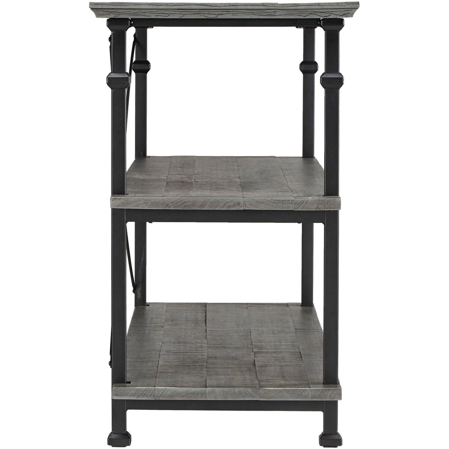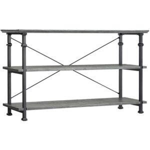 This Weston Home rustic elegant, detailed leg storage sofa table TV stand, combines non-corrosive sturdy metal and weathered wood to bring your living space a unique, vintage-industrial look that complements most decors. This 48″ TV stand has three large, open shelves. You can use it to hold your home theater, DVD player, cable box, gaming equipment, CDs, DVDs, games, and accessories. The versatile design also makes it suitable as a stand alone shelving unit ideal for displaying collectibles, photos, books, artwork, plants, and more.