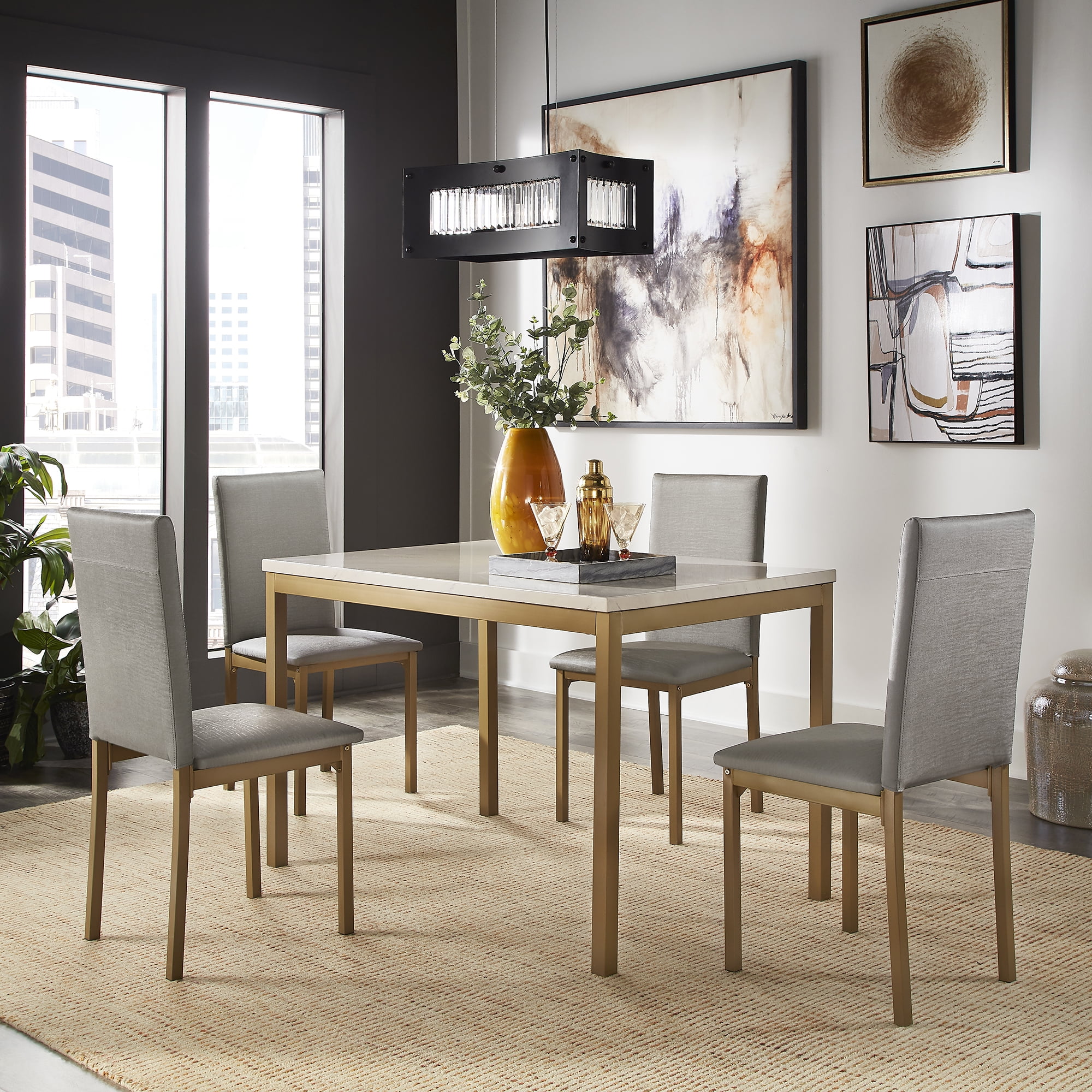 Weston Home Declan Modern 5-Piece Faux Marble Dining Set, White/Gold/Gray