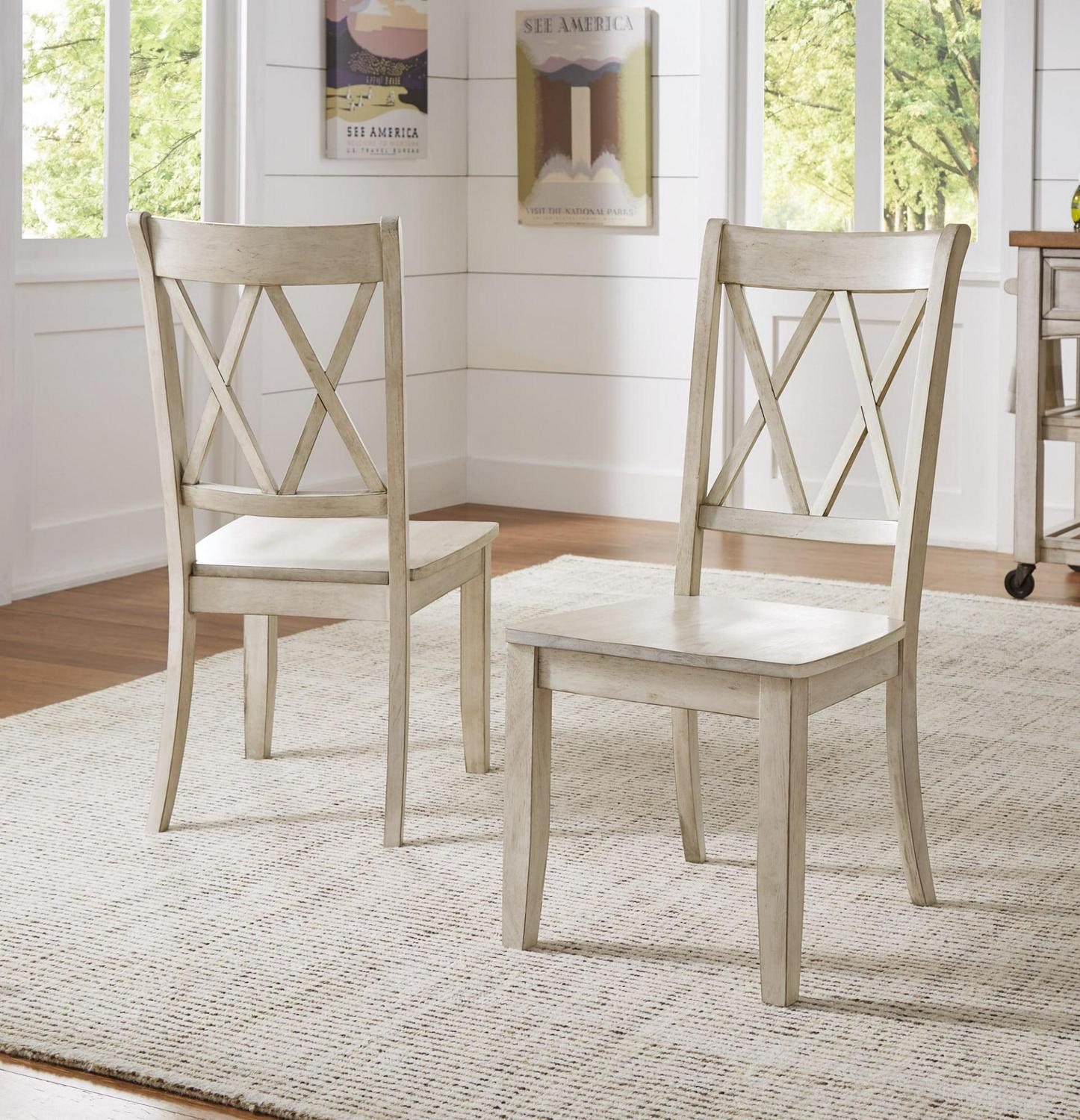 Give your dining room or eat-in kitchen a simple, vintage air with these X back dining chairs. The graceful design is classic and subtle, while the antique white finish offers an airy, farmhouse look that will easily match any existing or preferred color scheme! Made from solid rubber wood construction that will last for years to come. Encompasses traditional and transitional designs. Taking cues from time-honored craftsmanship, these pieces simultaneously draw from tried and true roots and contemporary elements.