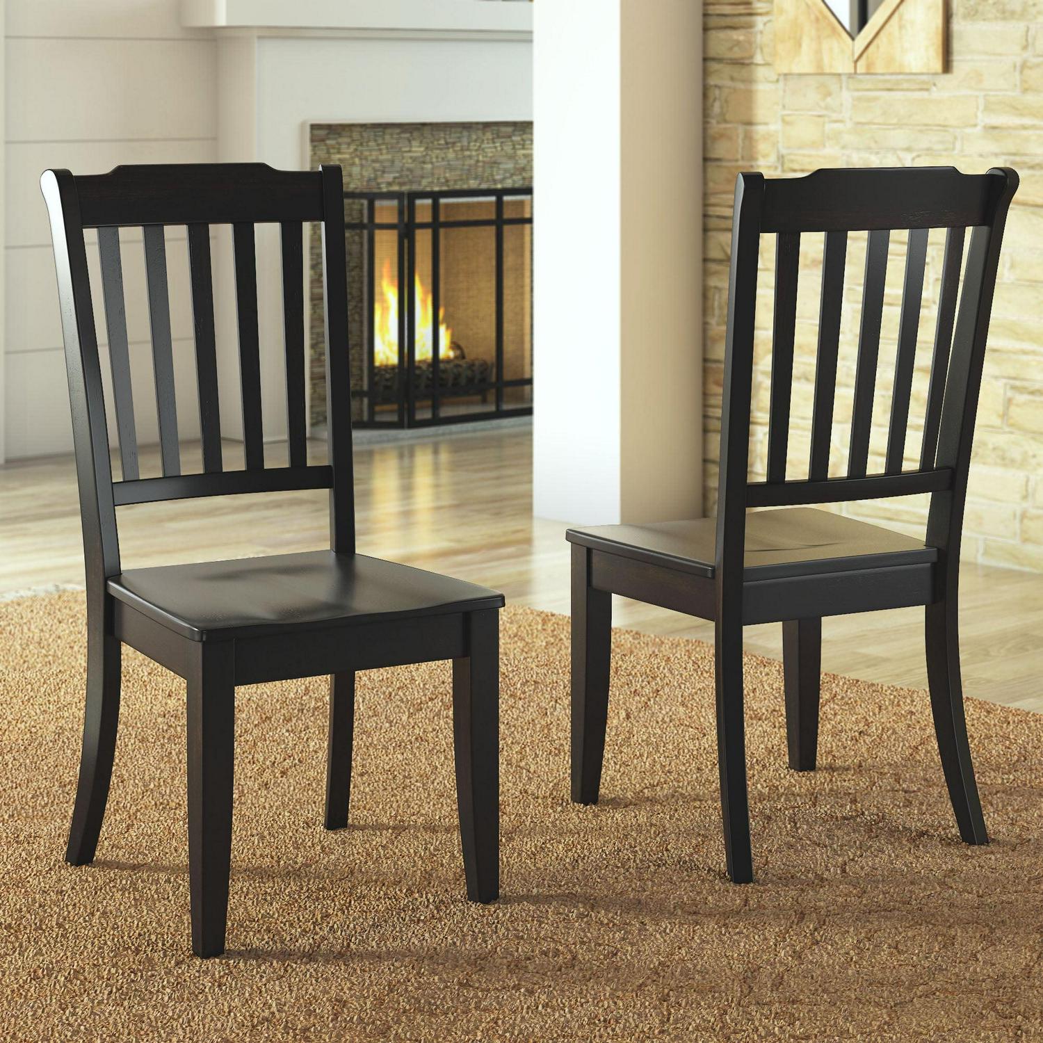 Weston Home Farmhouse Slat Back Wood Dining Chairs, Set of 2, Antique Black