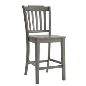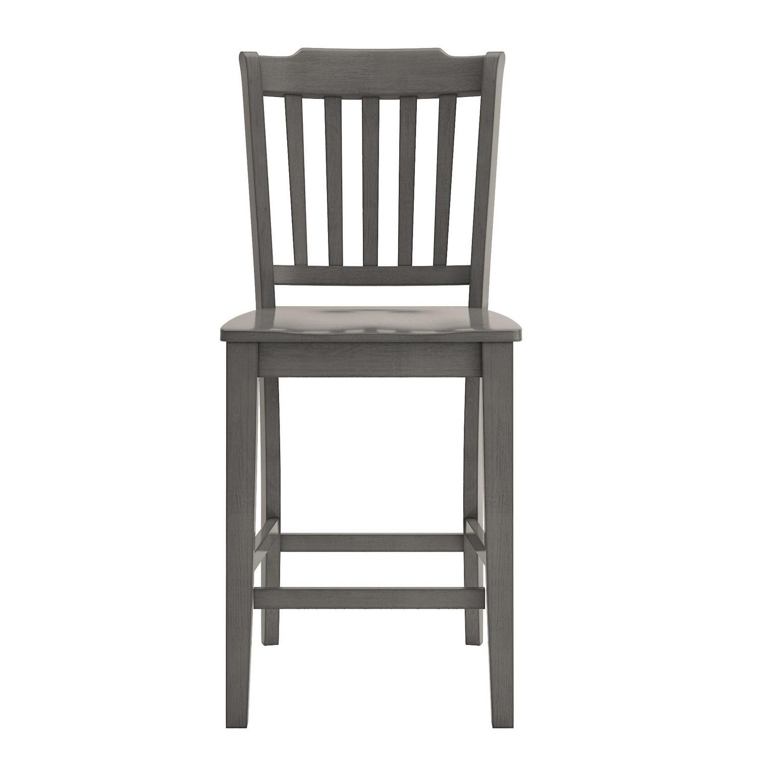 Weston Home Farmhouse Vintage Slat Back Solid Wood Counter Height Chair, Set of 2, Antique Grey