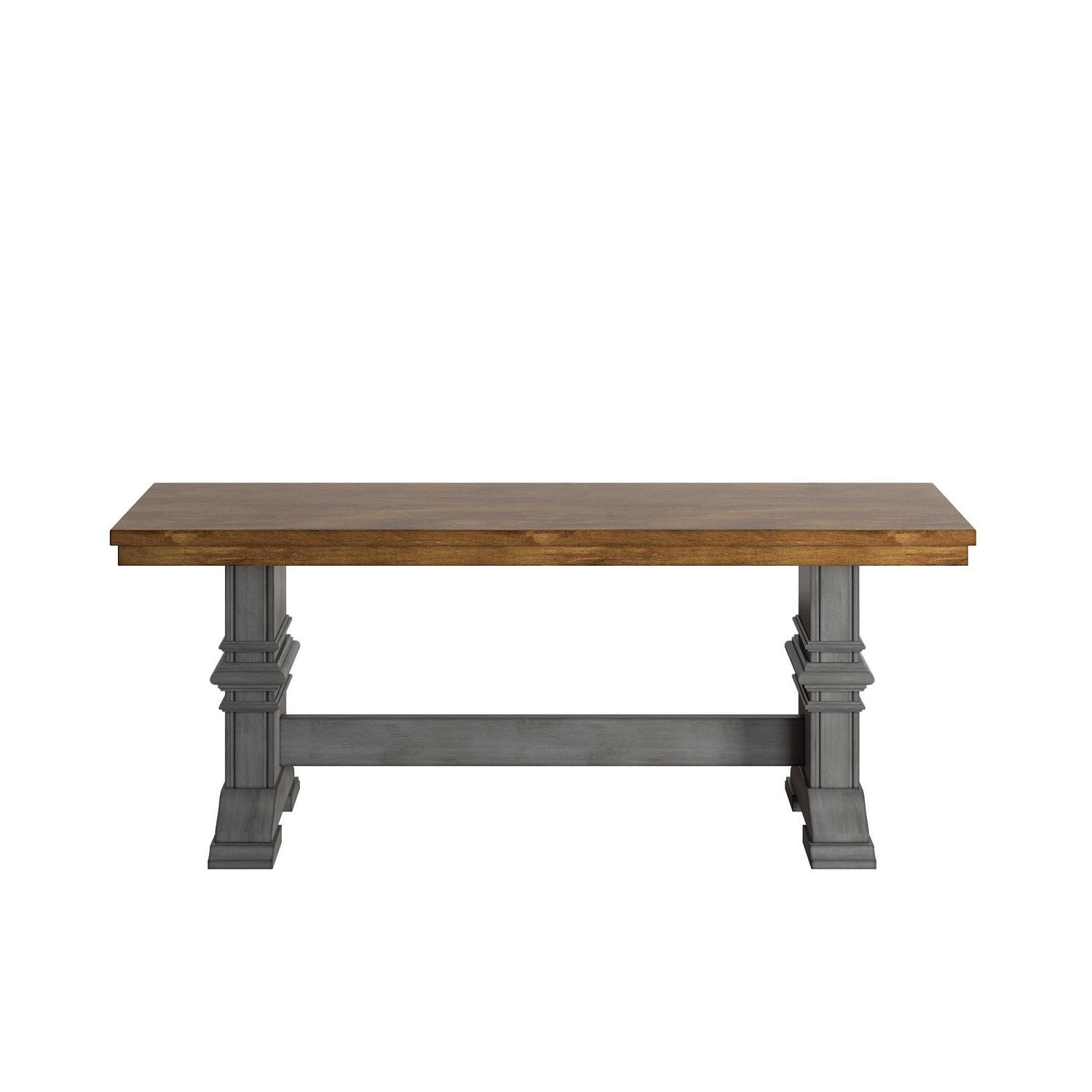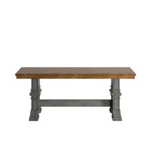 Weston Home Farmhouse Wood Dining Bench with Trestle Leg, Antique Grey