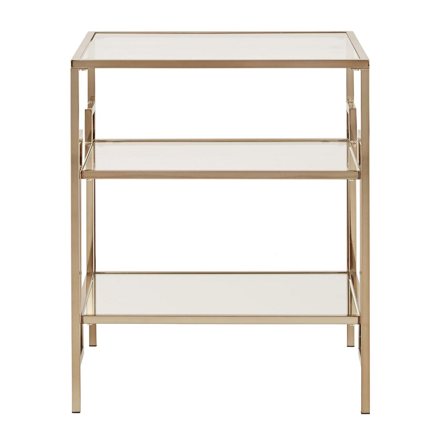Weston Home Katrien Side Table With Mirror Bottom And Glass Shelf And Top, Champagne Gold