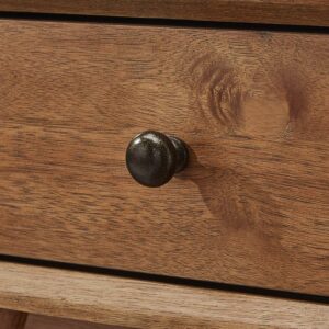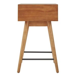 With its smart storage and mid-century flair, the HN Home Krisel Mid-Century Modern End Table makes a great bedside or chairside companion. This end table boast a spacious top and single box drawer on side-mount metal glides for smooth, dependable operation. It’s built of rubberwood and veneers in a natural brown finish and stands on long, lean, and flared wood dowel legs with black metal stretchers.
