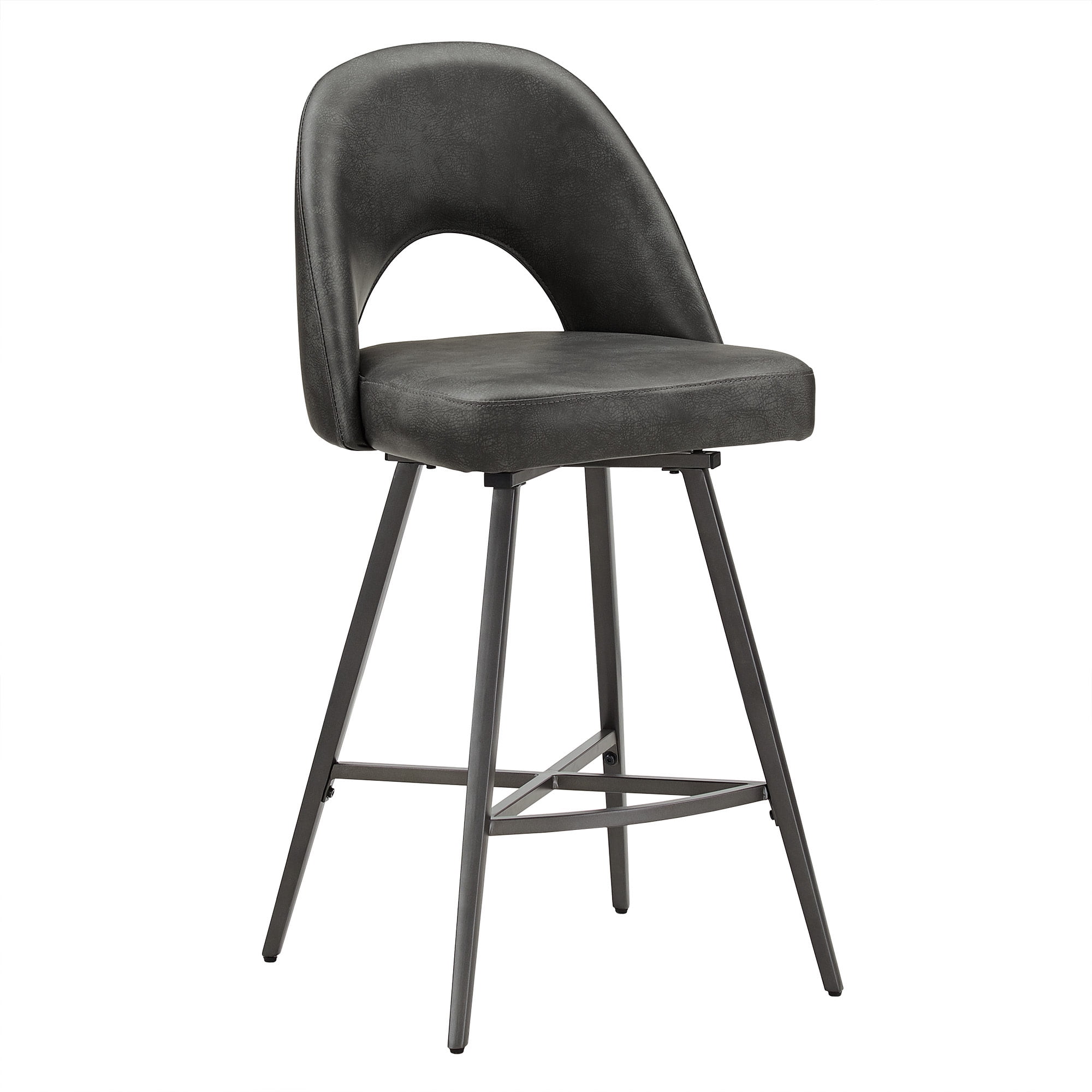 Weston Home | Fashion and function come together with these Metal Swivel Bar Stools (Set of 2). Featuring soft fabric or PU leather upholstery, sturdy metal legs, and a convenient swivel feature, casual dining with friends has never been comfier. These stools radiate mid-century modern vibes with their half-circle cutouts and thin, black finished legs. Perfect for contemporary or transitional design styles, this set completes any countertop. This Weston Home Counter Height Stool comes in a variaty of fun faux leather colors.