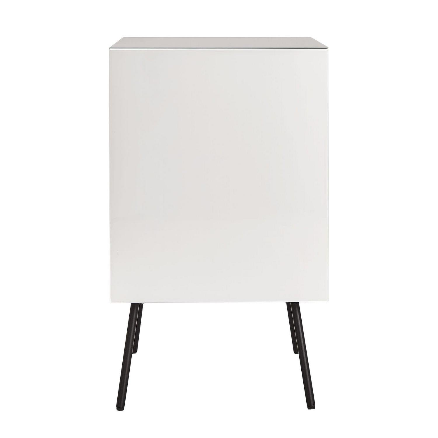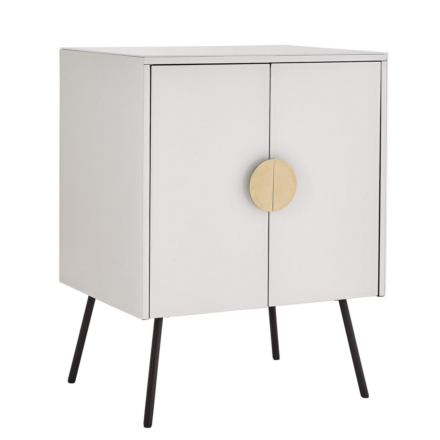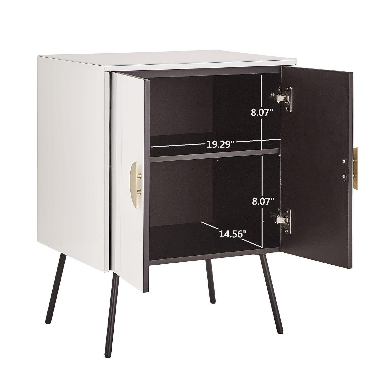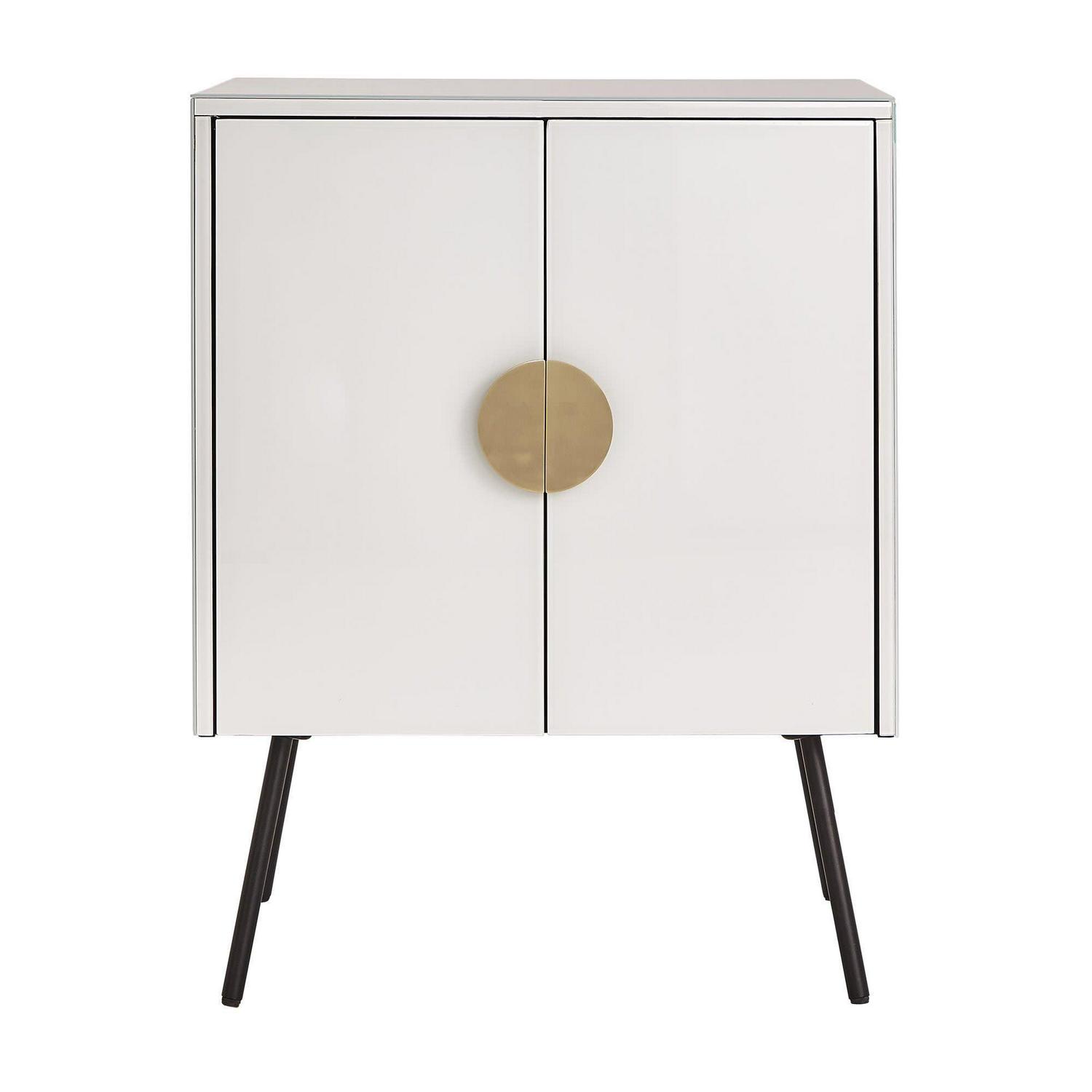 A modern glam aesthetic is easily created for any living space with this Glass 2 Door Accent Cabinet. The two white glass cabinet doors discreetly tuck your small essentials away within the interior, providing you plenty of storage space with two shelves. The metallic gold cabinet handles add a luxurious element to this basic, everyday piece, making it both beautiful and functional. Combining contemporary elements with daring hues, shimmering metallic finishes and an modern air, this style is for the free-spirited trend setter.
