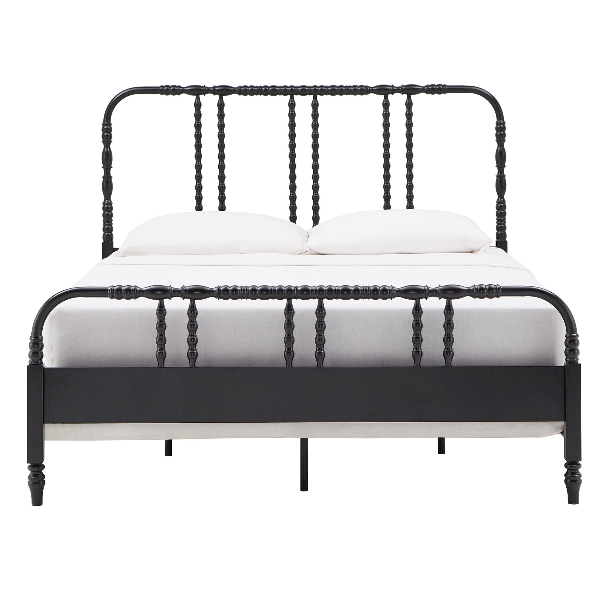 Includes one (1) bed Mattress and box spring required (not included) Sleek, powder-coated black finish All-metal construction Footboard height: 24.85 in. Underbed clearance: 6.7 in. height Headboard height: 47.2 in. The head and footboards each feature six (6) turned spindles Ships in one (1) box Assembly required Available in queen and full size