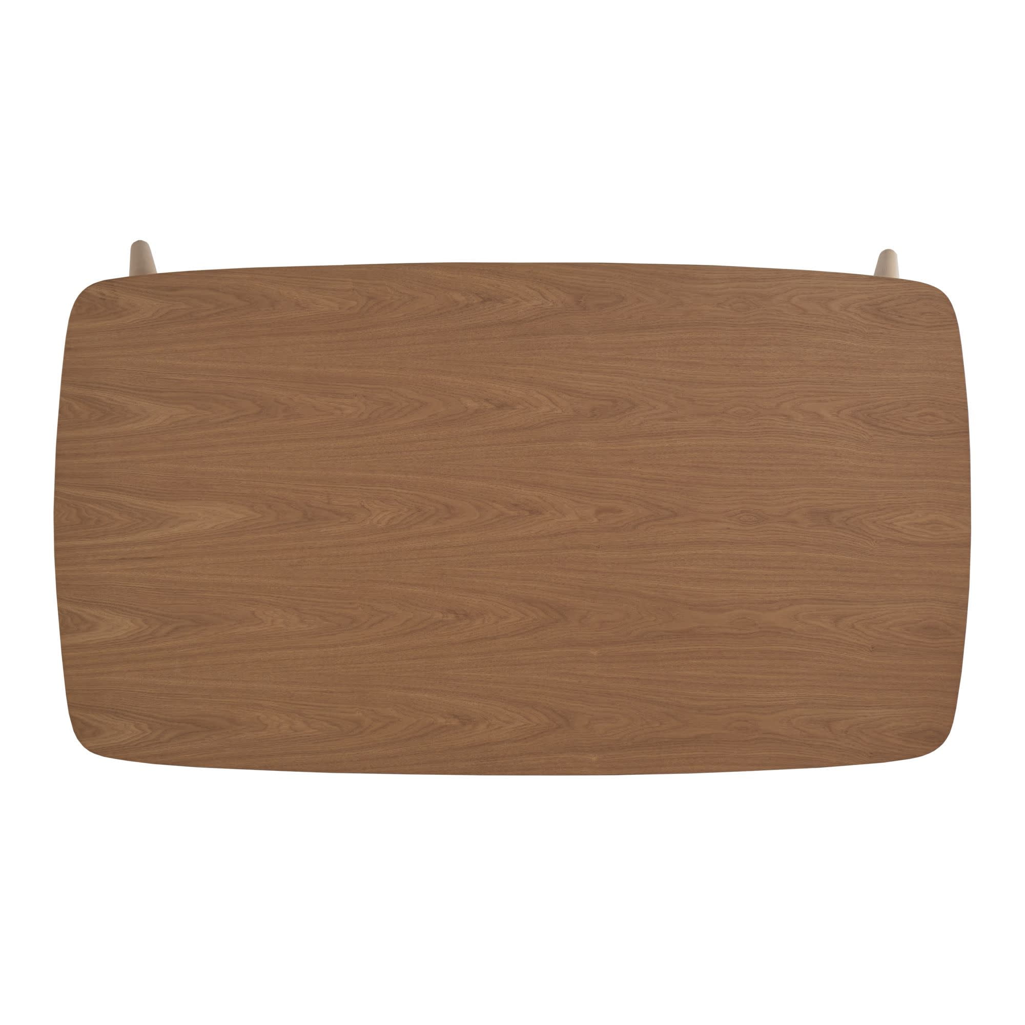 Set includes: One (1) Dining Table Overall dimension: 63 inches long x 35.4 inches wide x 29.33 inches high Under table clearance: 26.4 in. height Table top thickness: 0.7 in. Made with rubberwood, MDF, and veneer Natural wood grain detail Mid-century modern design Finish: Natural oak or walnut Assembly required Tapered, angled legs Ships in one (1) box Rooms: Dining Room, Kitchen, Breakfast Nook