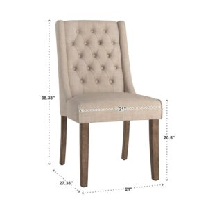 Weston Home Natural Upholstered Tufted Back Chair, Set of 2, Beige Linen