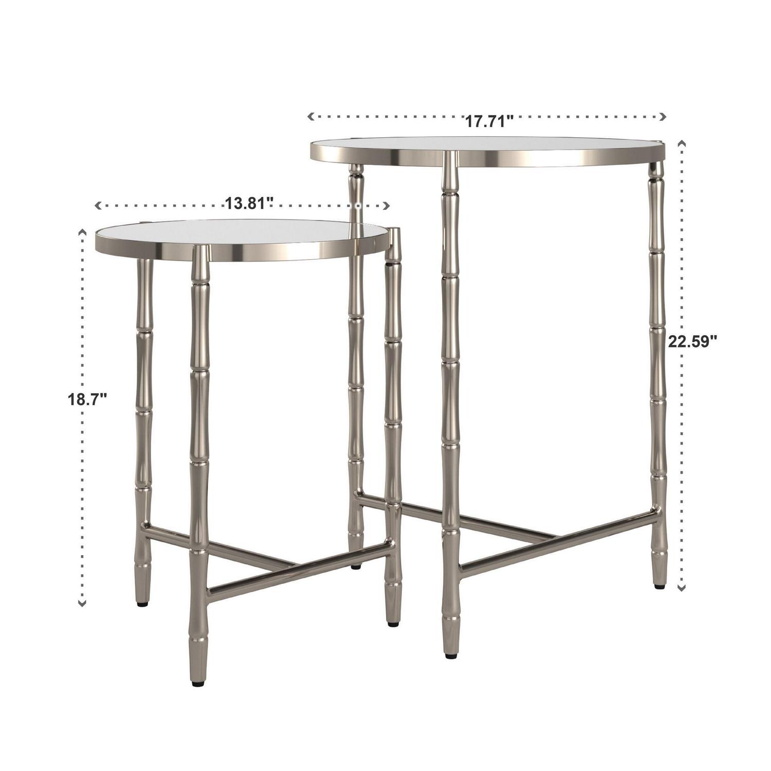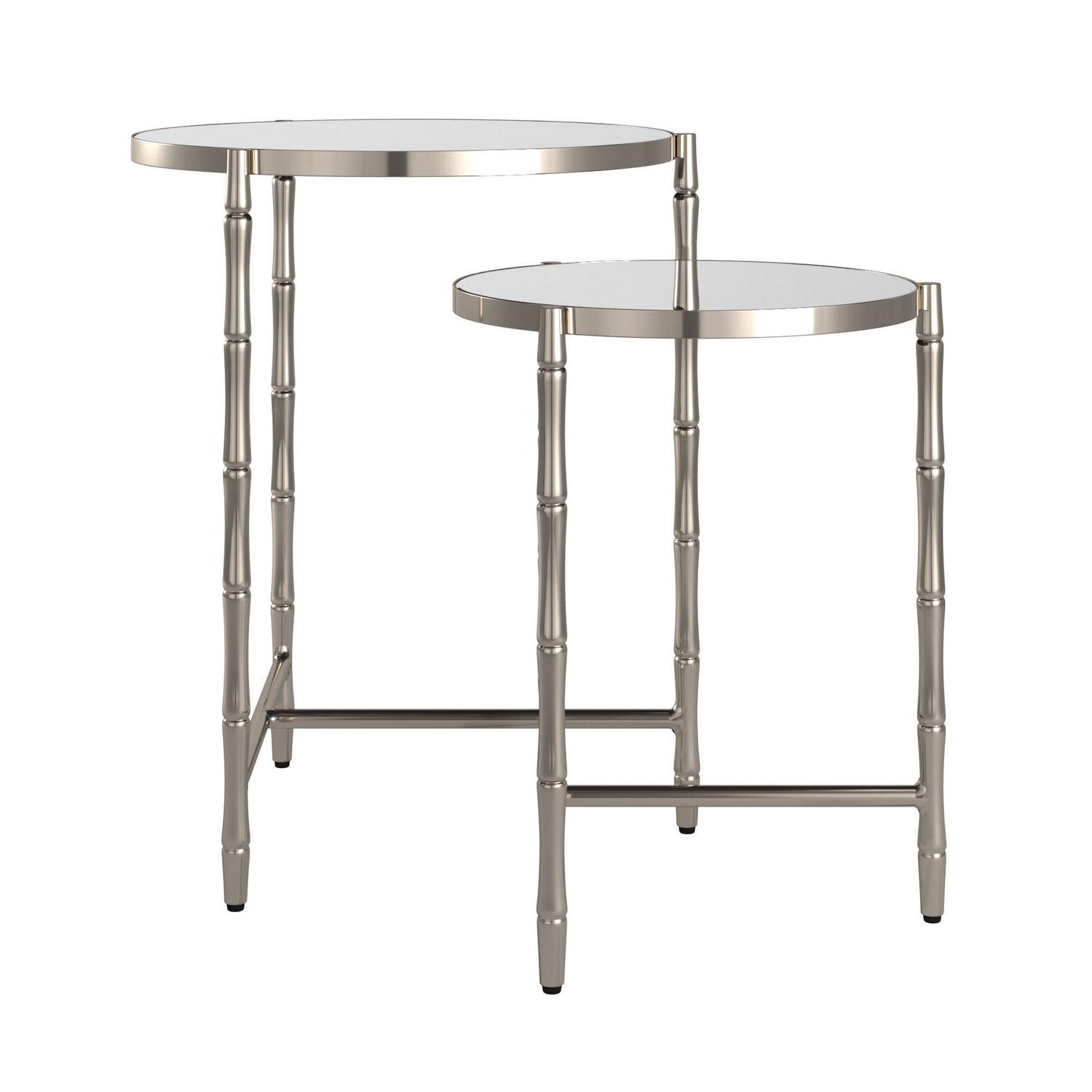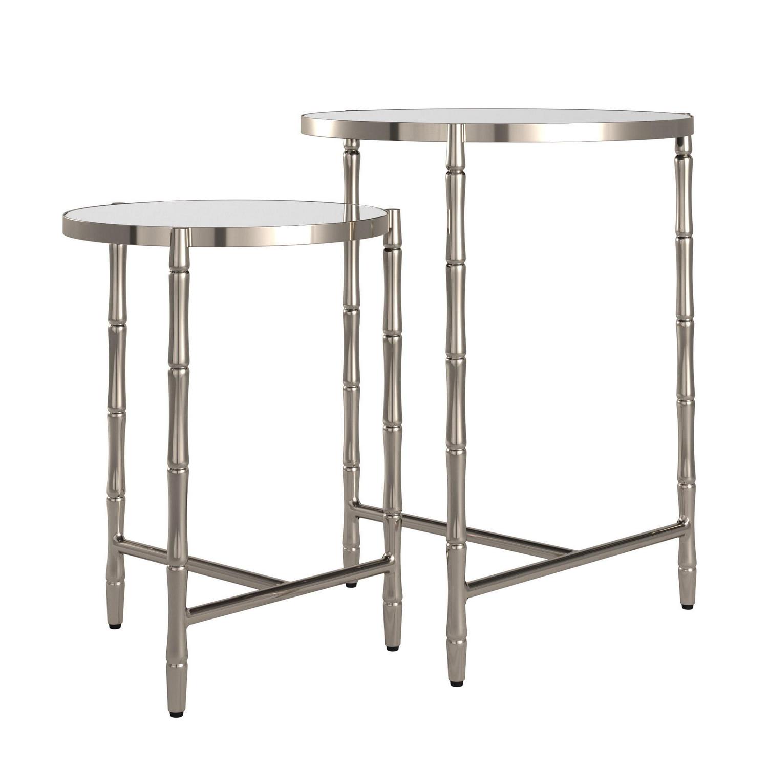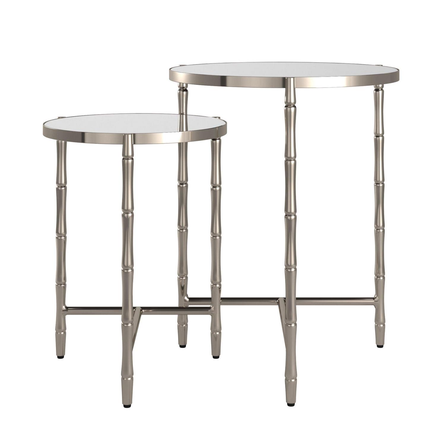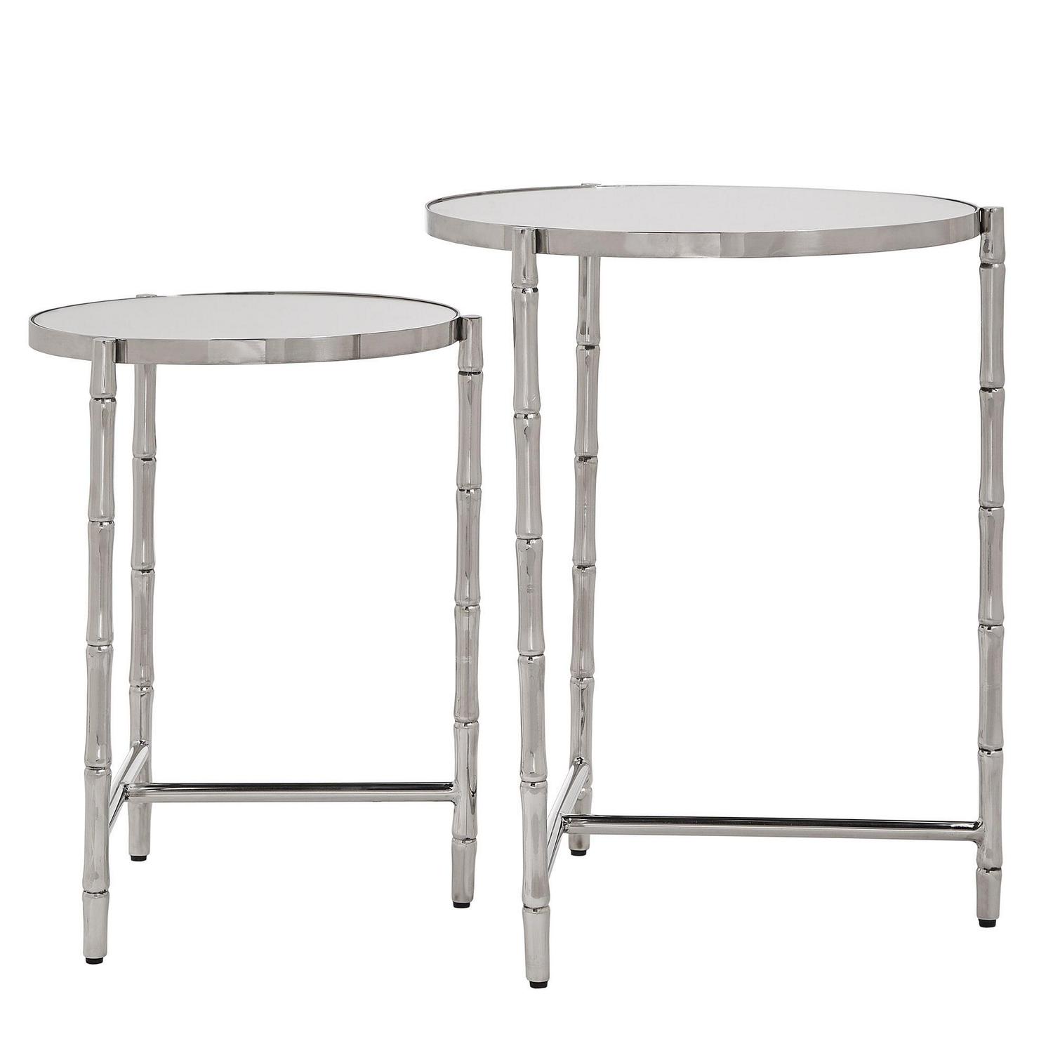 Weston Home Nuada Stainless Steel Round Nesting Table, Set of 2, Stainless Steel, Mirrored Top