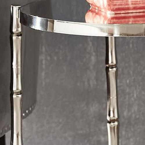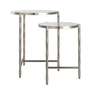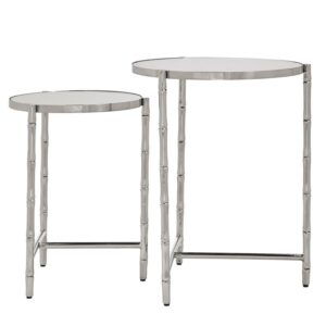 An upscale rainforest aesthetic is easily portrayed in your living space with this Conlon round bamboo-look stainless steel 2-piece nesting table. With bamboo-inspired stainless steel legs and a marble glass tabletop finish, luxurious style is added to this everyday piece. Beautiful and functional, this nested style set provides plenty of space to display your favorite home goods and accessories. infusing contemporary elements with daring hues, shimmering metallic finishes, and an eclectic air, this style is for the free-spirited trendsetter.