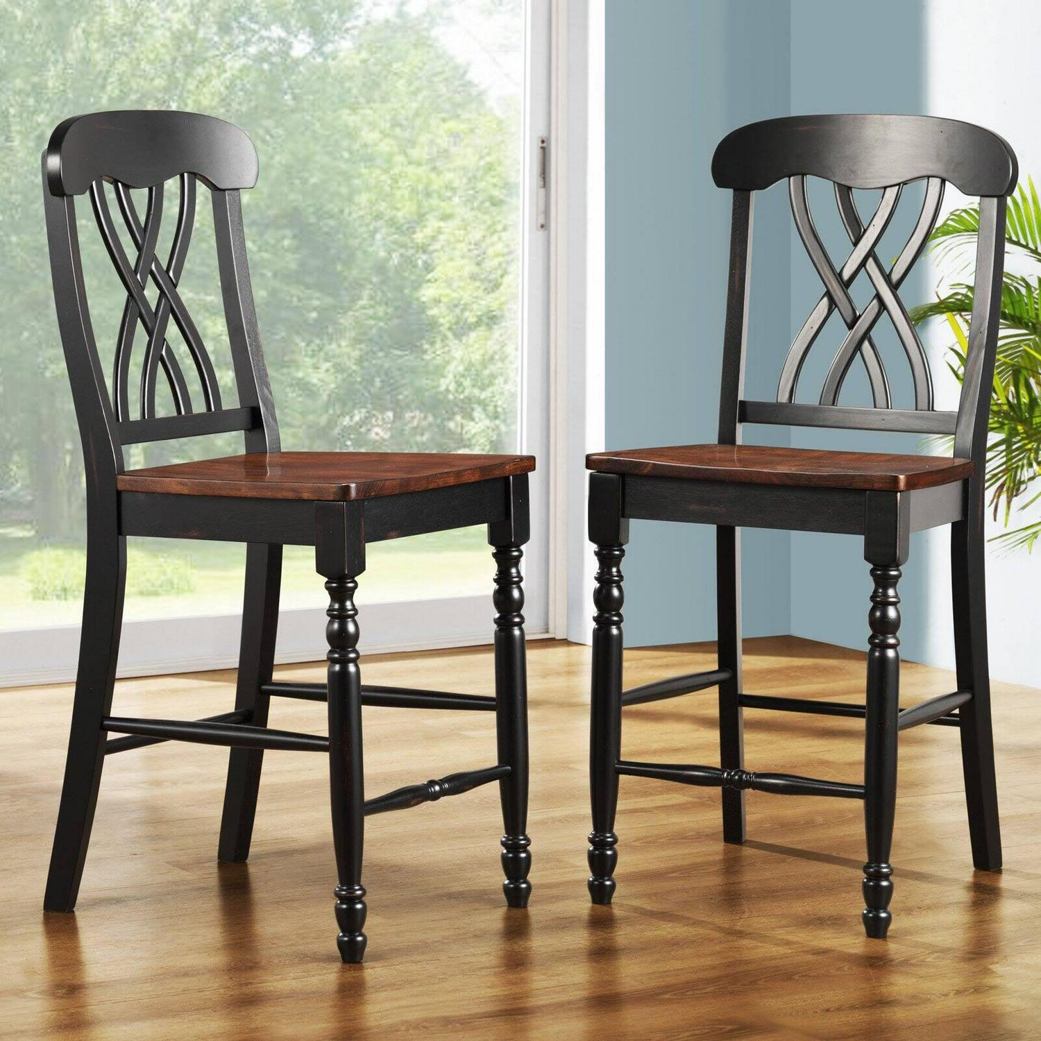 Weston Home Ohana Counter Height Chair – Black and Oak – Set of 2