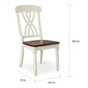 Catch the essence of a casual country home with these chairs. With its solid wood construction and cherry finish, this dining collection is as durable as it is timeless. This item comes in a two-tone finish and its rustic, country design will have your guests feel right at home. Please allow slight color and scale of the pattern deviation due to light and display. Size may vary a little due to manual measurement.