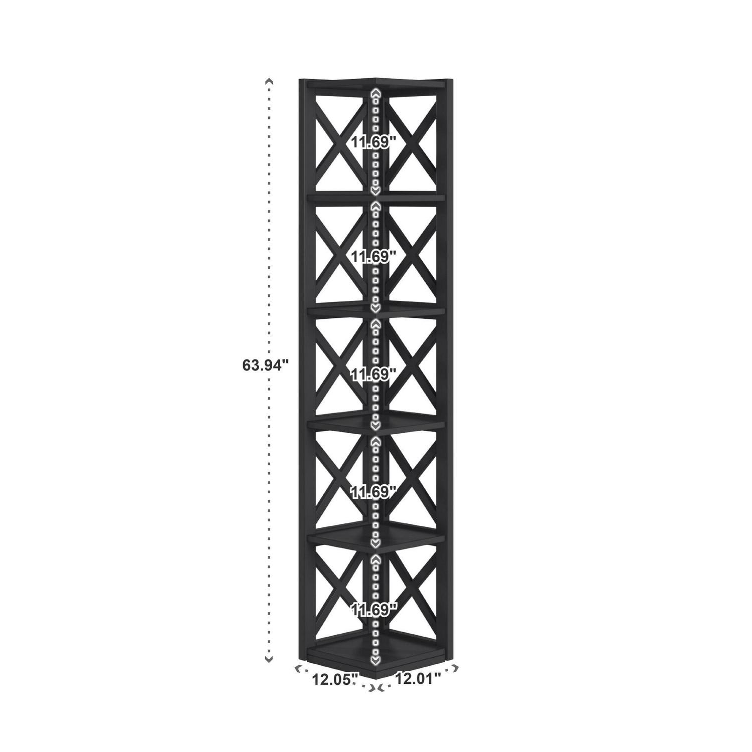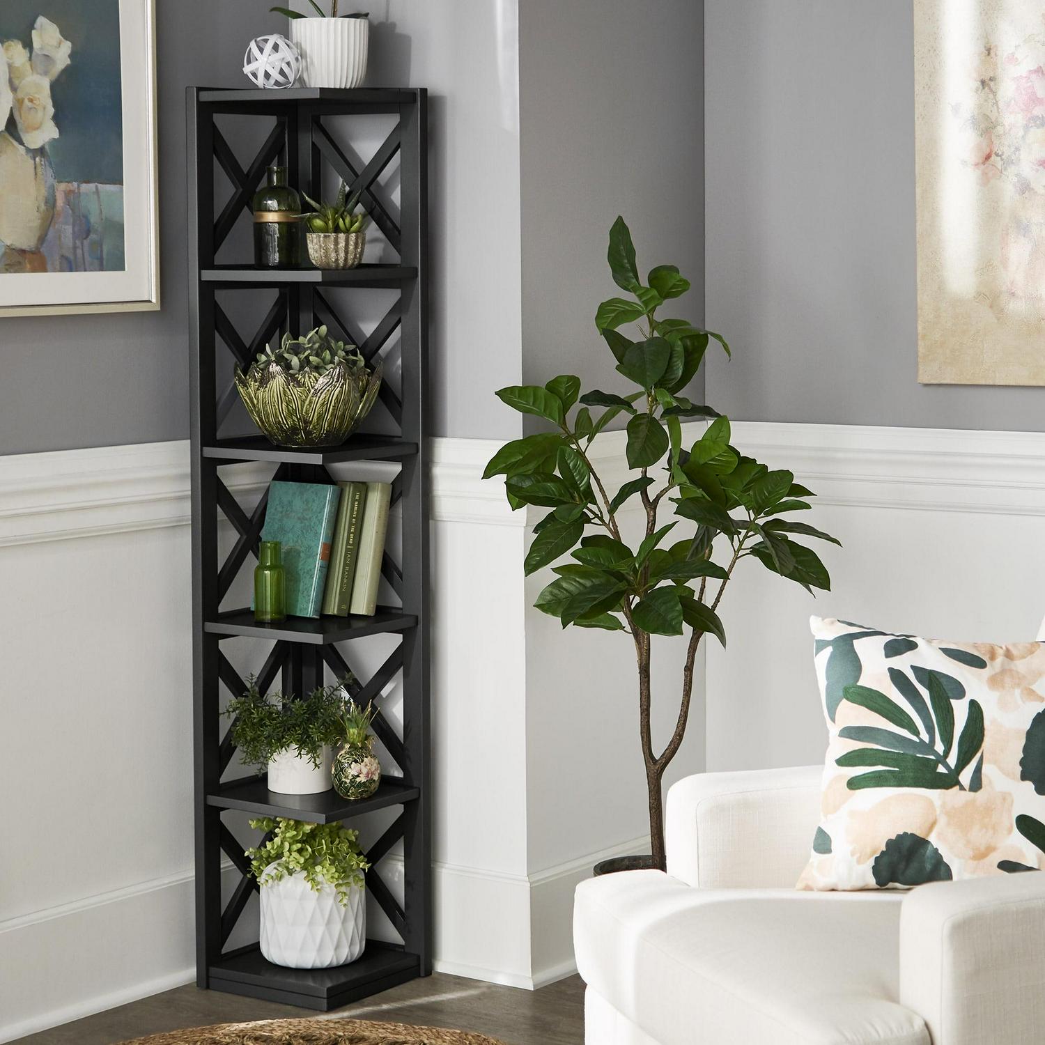 Weston Home Rebecca X-Frame 5-Shelf Wood Corner Bookcase, Black