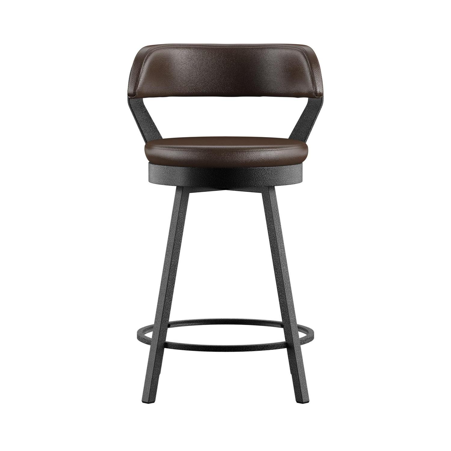 Add modern, industrial style to your home with the Weston Home Reinhold Faux Leather 25 in. Swivel Chair – Set of 2. Each chair features a metal frame in a powder-coated gray finish. The seat and back are upholstered in faux leather, which brings a luxe touch to the piece. A round stretcher acts as a convenient footrest, while the swivel function allows you to turn easily and converse with guests. Choose from available fabric colors to find the Weston Home Reinhold Faux Leather 25 in. Swivel Chair – Set of 2 that works best for your kitchen, dining room, or breakfast nook.