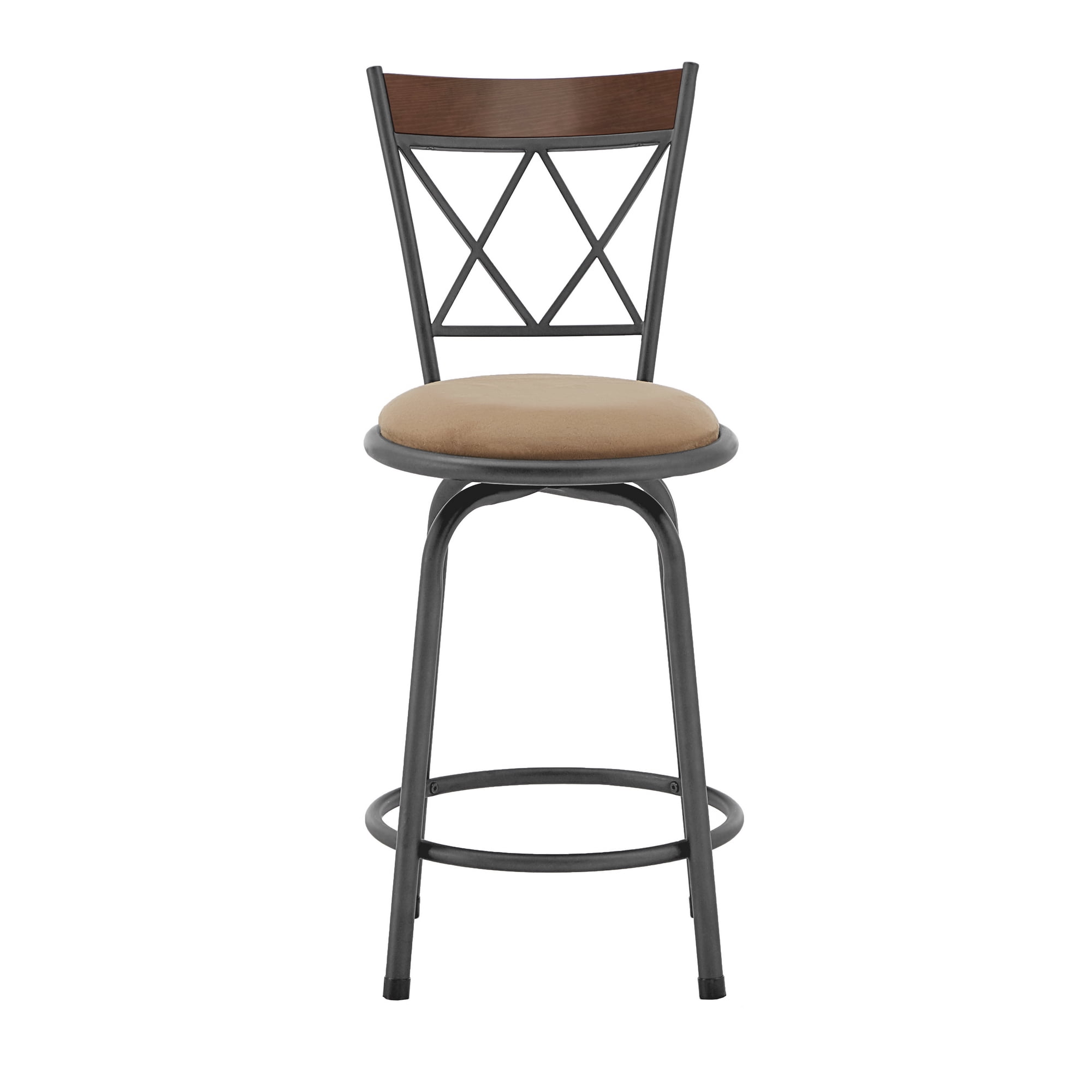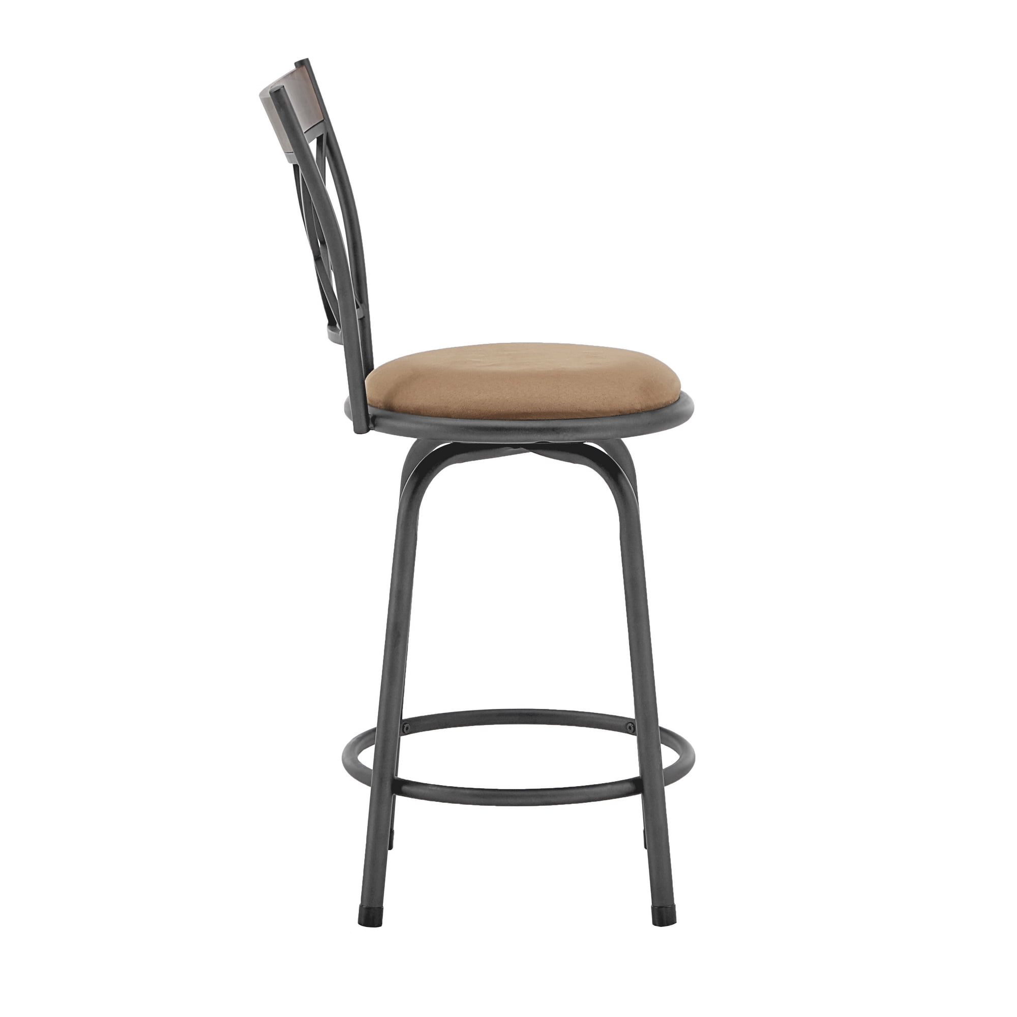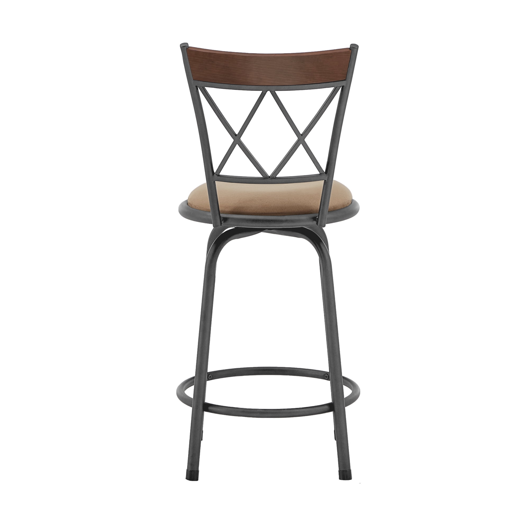 Set includes: three (3) armless adjustable height stools Set includes 3 armless bar stools Foam-cushioned seating for ample comfort Charming, rustic cherry finish on wooden upper back trim Double x-cross back accents Easily adjustable height; simply attach included legs Dimensions: 15 inches wide x 19.68 inches deep x 36.75 – 43 inches tall Assembly Required Ships in one (1) box