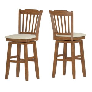 Weston Home Sheena Slat Back Bar Height Wood Swivel Stool, Oak