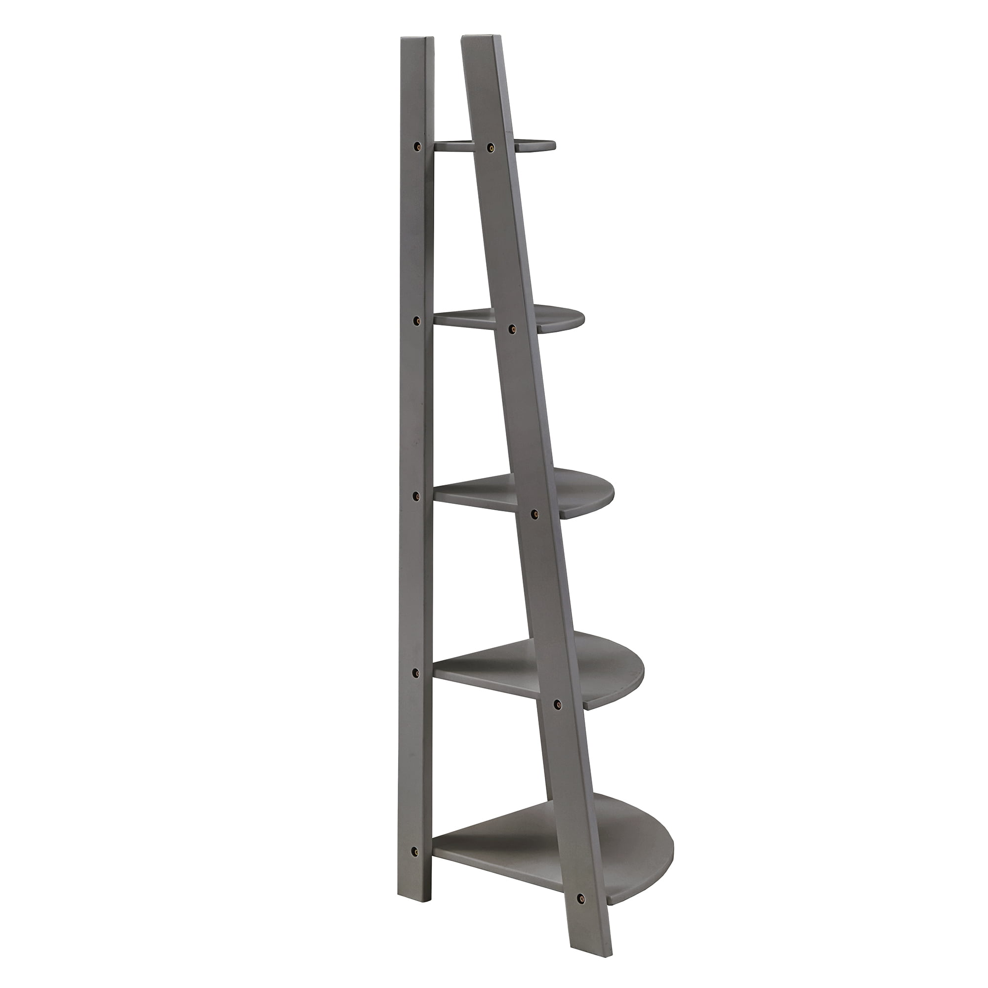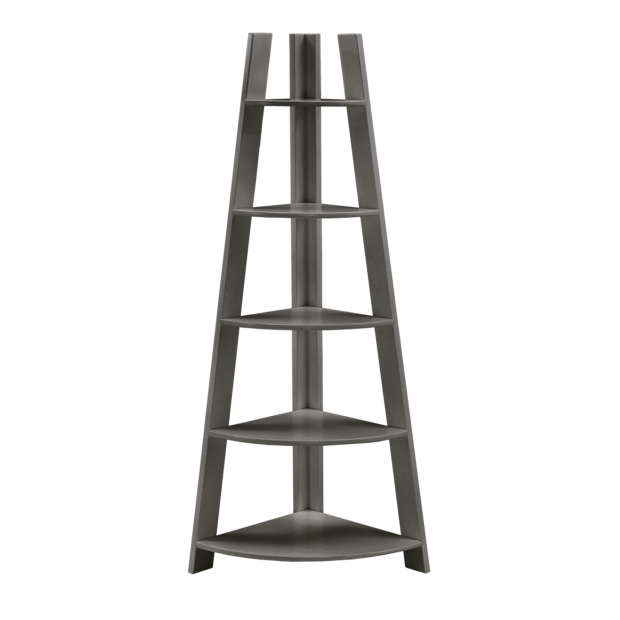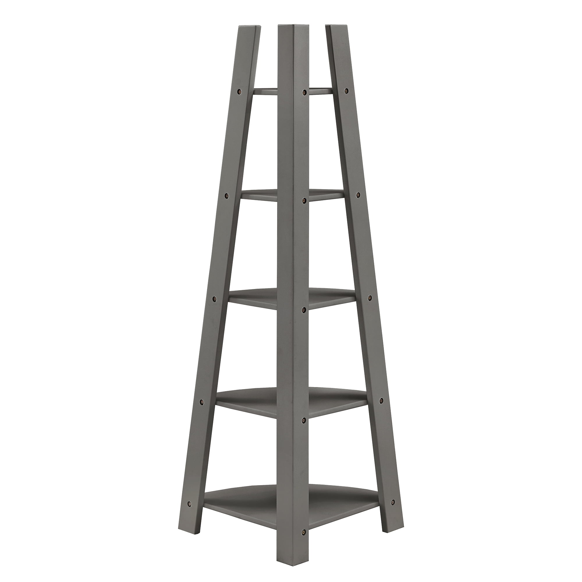 Weston Home Solvig Corner Ladder 5 Shelf Bookcase, Gray