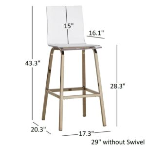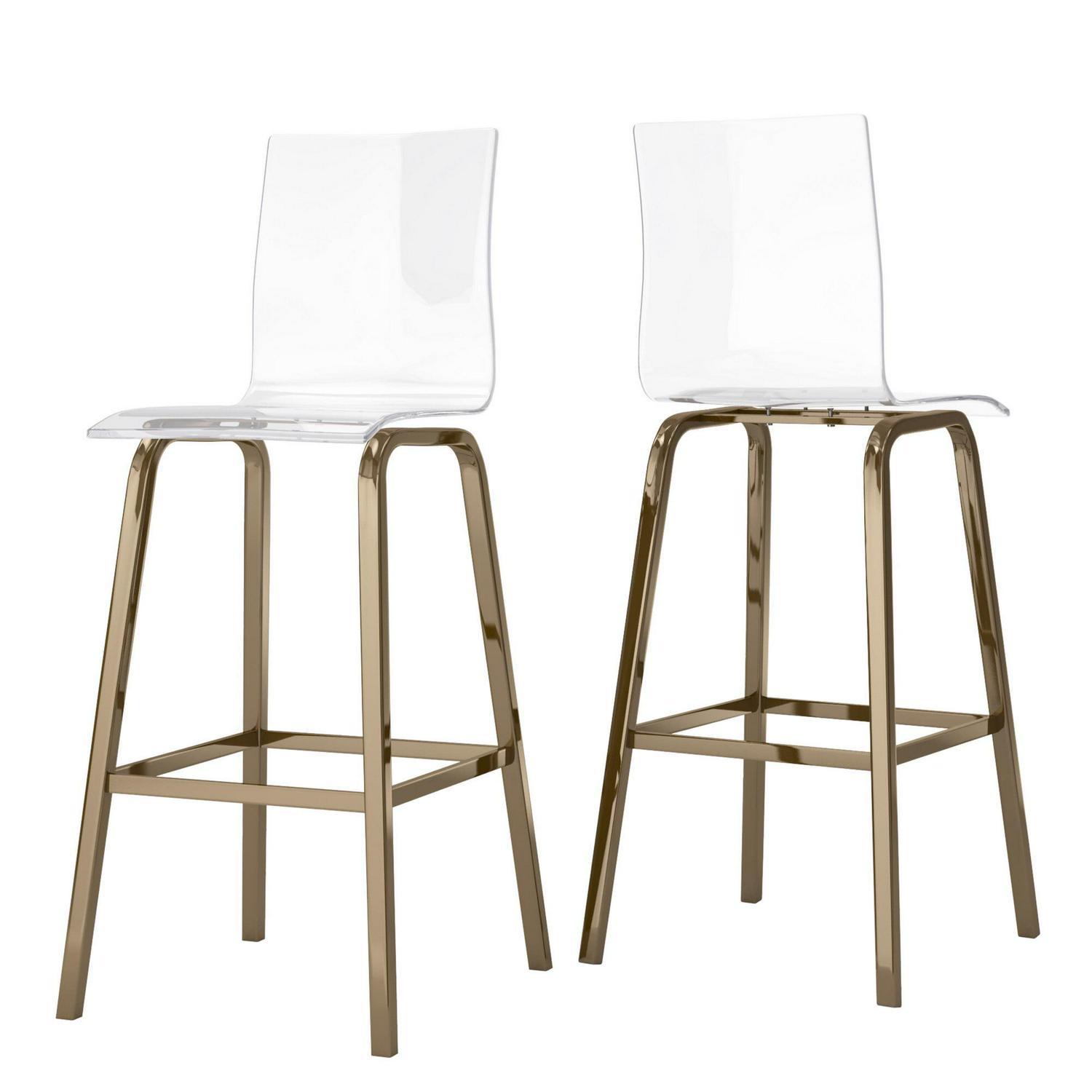 Weston Home Valenti Acrylic Swivel High Back Bar Stools, Set 2, Champagne Gold