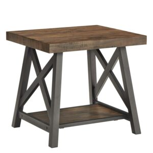 Weston Home Westyn Rustic X Base Wood End Table with Shelf, Brown