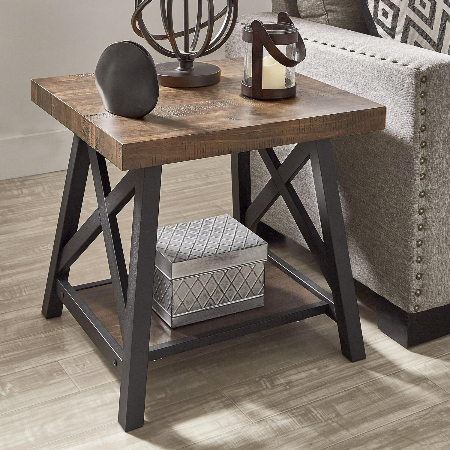 Display rustic, yet modern charm in your living room with the Weston Home Westyn End Table. The perfect mix of industrial and natural elements come together with this piece. A weathered wood table top complements the sharp features of the metal X-cross base to display a unique, contemporary look for your home. The open bottom shelf offers just enough space to display home decor items, while multiple wood finishes make coordinating this table with your existing color scheme a breeze. Pair with the Westyn Console Table and Westyn Coffee Table to complete the look.