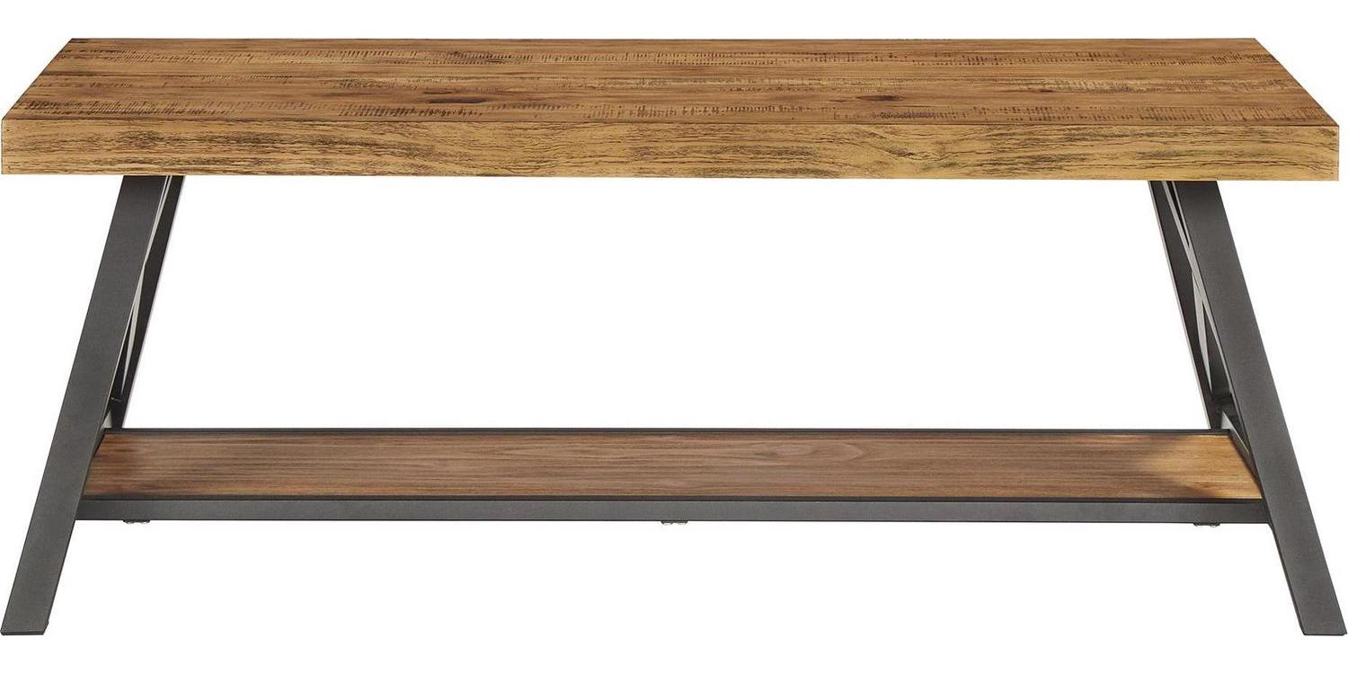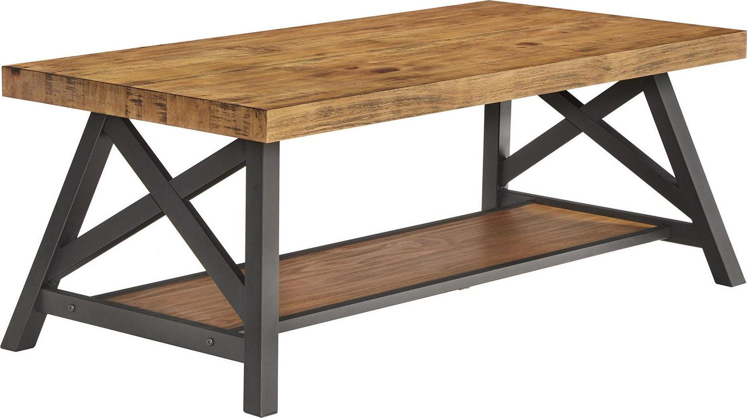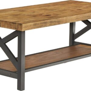 Display rustic, yet modern charm in your living room with the Weston Home Westyn Coffee Table. The perfect mix of industrial and natural elements come together with this piece. A weathered wood table top complements the sharp features of the metal X-cross base to display a unique, contemporary look for your home. The open bottom shelf offers just enough space to display home decor items, while multiple wood finishes make coordinating this table with your existing color scheme a breeze.