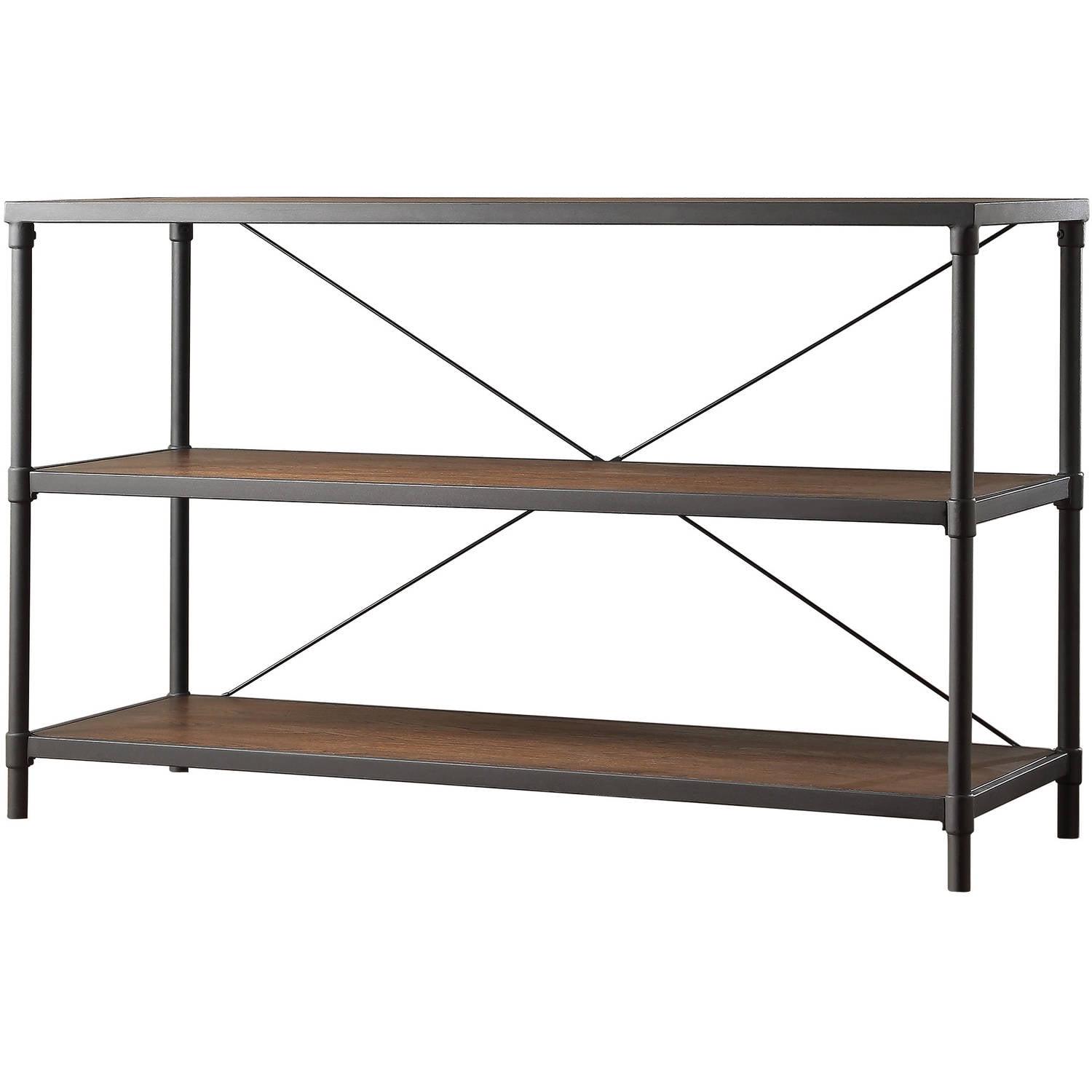 Give your living room, foyer, entryway or hallway a casual and stylish update with this charming sofa table, TV stand. The simple design features a rustic brown wood finish and dark metal piping accents, creating a modern industrial look that’s sure to fit almost any contemporary style! With two spacious lower shelves, you’ll have plenty of space for books, magazines, decorative items and more. Enjoy this chic and versatile sofa table in your home! Open Shelf Dimension: 49.25 inches wide x 17.25 inches depth x 12 inches height. Overall Sofa Table dimensions: 50 inches wide x 18 inches depth x 30 inches height. Weston Home Sofa Table requires some assembly.