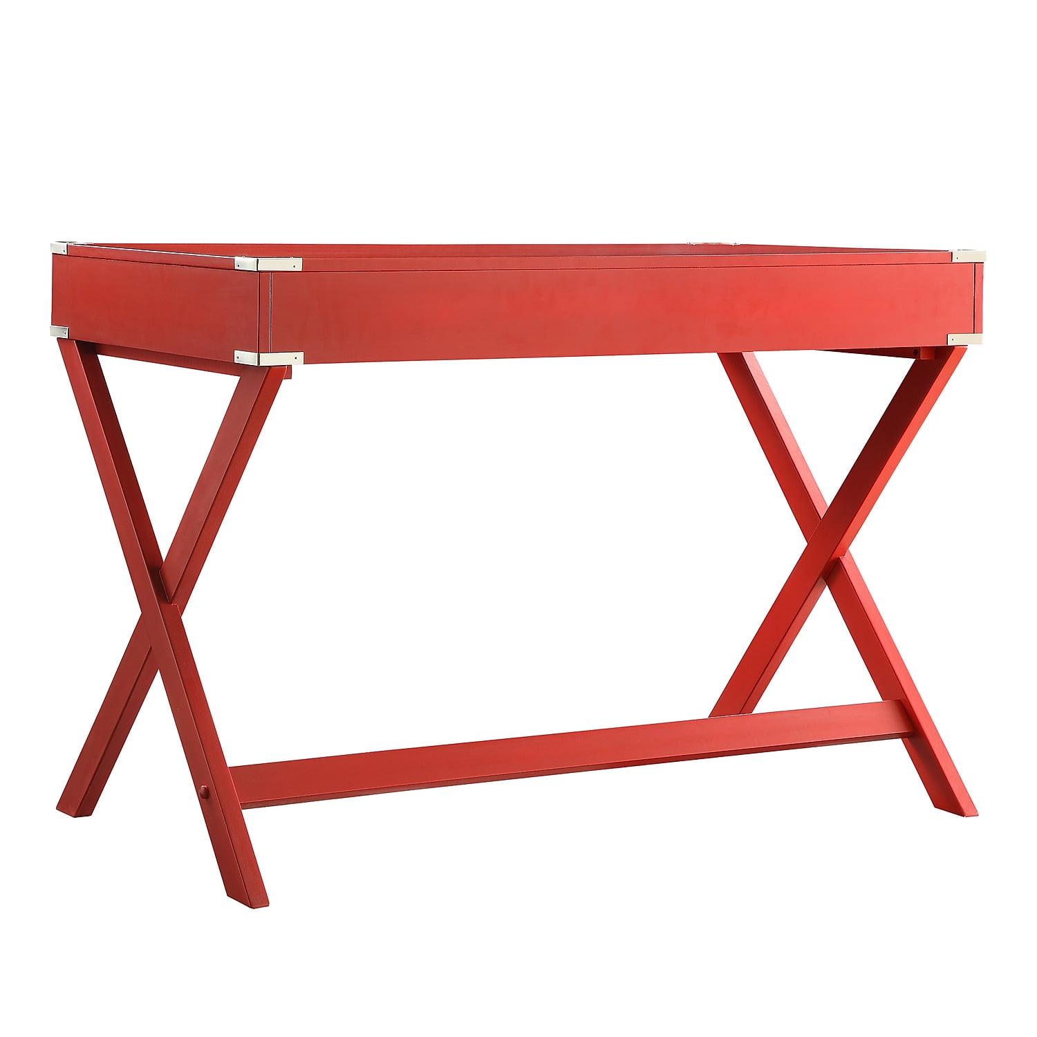 Weston Home Wood X-Base Campaign Writing Desk with Drawers, Samba Red