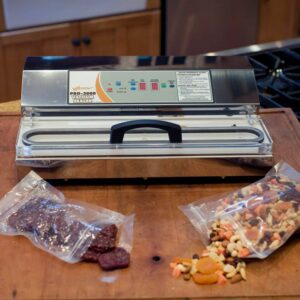 The Weston PRO-3000 Stainless Steel Vacuum Sealer is ideal for sealing your season’s harvest, portioning out bulk beef, pork, and lamb from a butcher or direct from a farm, and sealing your fresh catch. This sealer features an easy-to-use control panel that helps you to monitor the stages of the sealing process and seal time, and has an extra-large sealing bar for sealing bags up to 15″ wide. The PRO-3000 vac sealer also includes a double piston vacuum pump to deliver up to 28″ HG vacuum strength. This model has an automatic mode with simple one-touch operation and a manual mode allows you to control the amount of vacuum pressure for sealing sharp, delicate, or moist foods and objects. The transparent acrylic lid allows for perfect bag alignment while sealing.