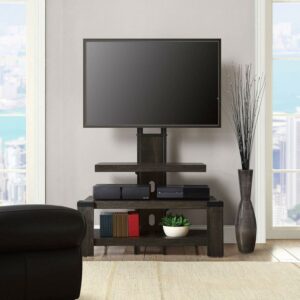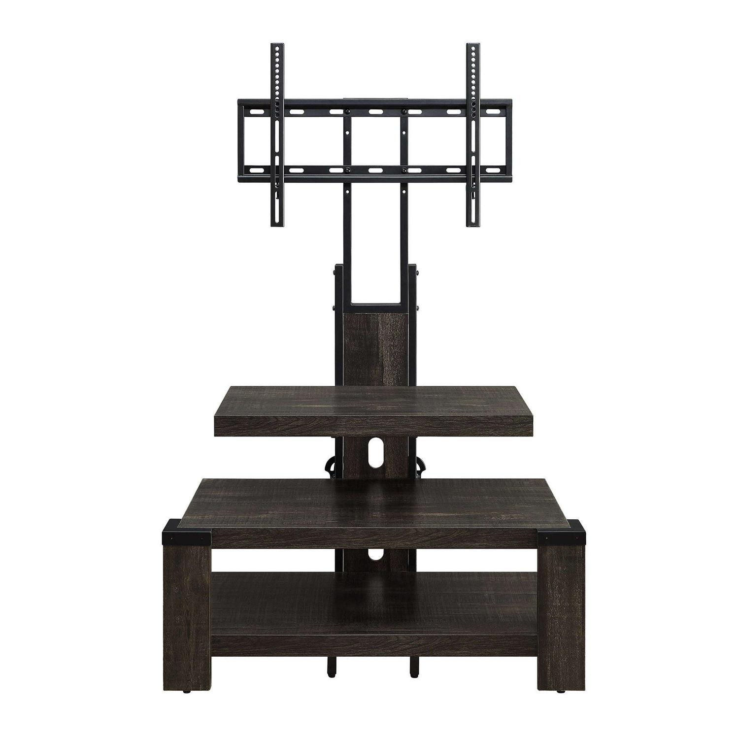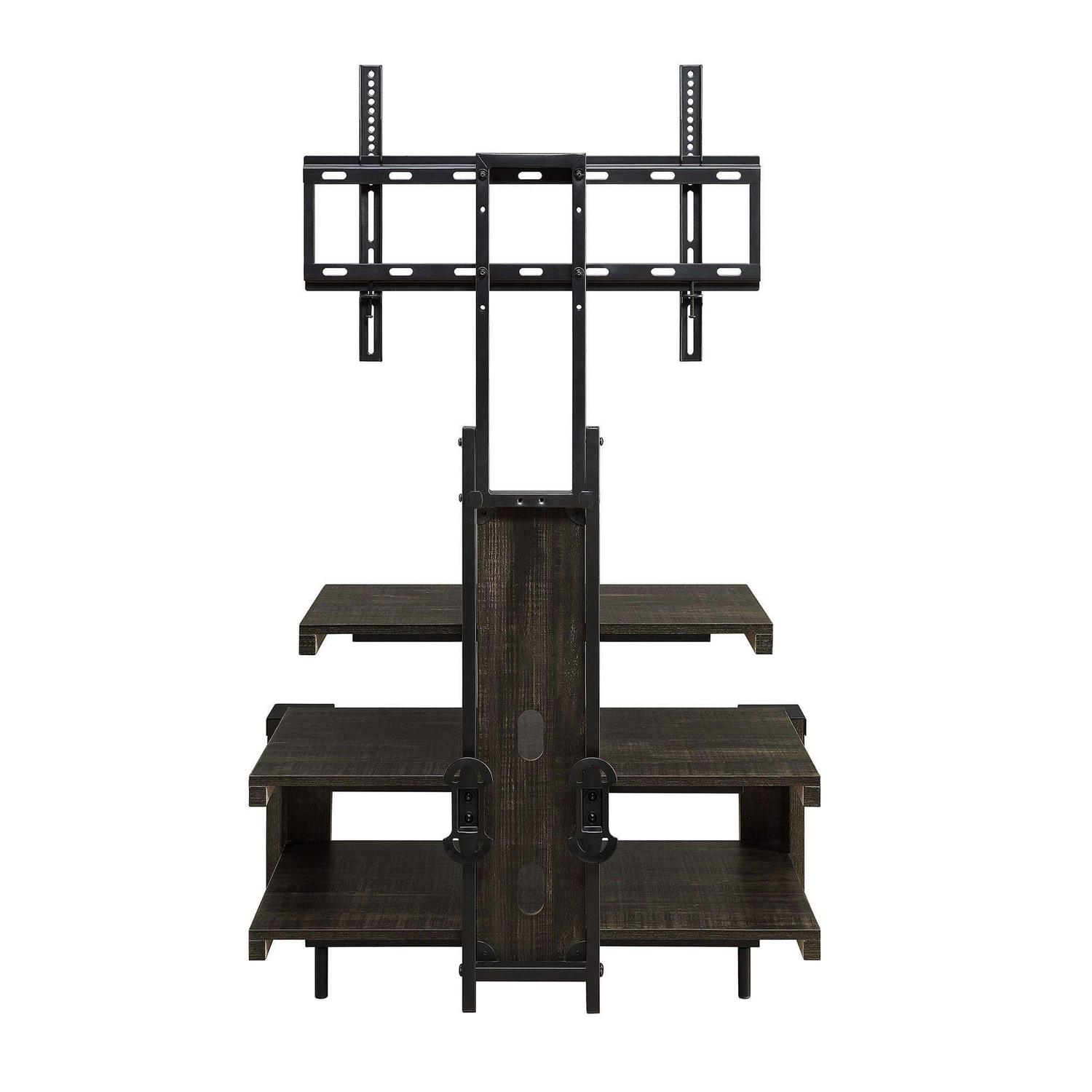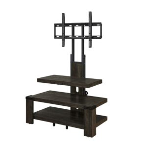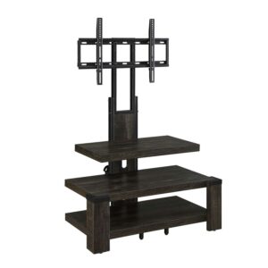 A weathered dark pine finish showcases the stunning wood grain patterns to bring warmth to your home’s interior design. The matte black metal frame and feet complement the wood finish and adds a touch of contemporary style to the warm colors of the Whalen 3-Shelf TV Stand. This TV stand fits televisions up to 55 inches and the three open shelves provide plenty of space for all of your entertainment components, gaming consoles and accessories. Use the floater mount or the optional wall mount that’s included to match your home style. Whether you choose to use the TV stand in your living room, game room, kid’s room or any other area, this media stand is perfect for any room in your home! Upgrade your home with the incredible items Whalen has to offer. From television stands to entertainment centers and tv cabinets, you’ll be sure to find something to meet your home decor!