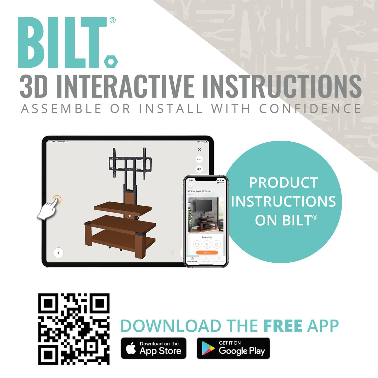 – 3D interactive assembly guide available through free BILT app (Download from the app store or Google Play)