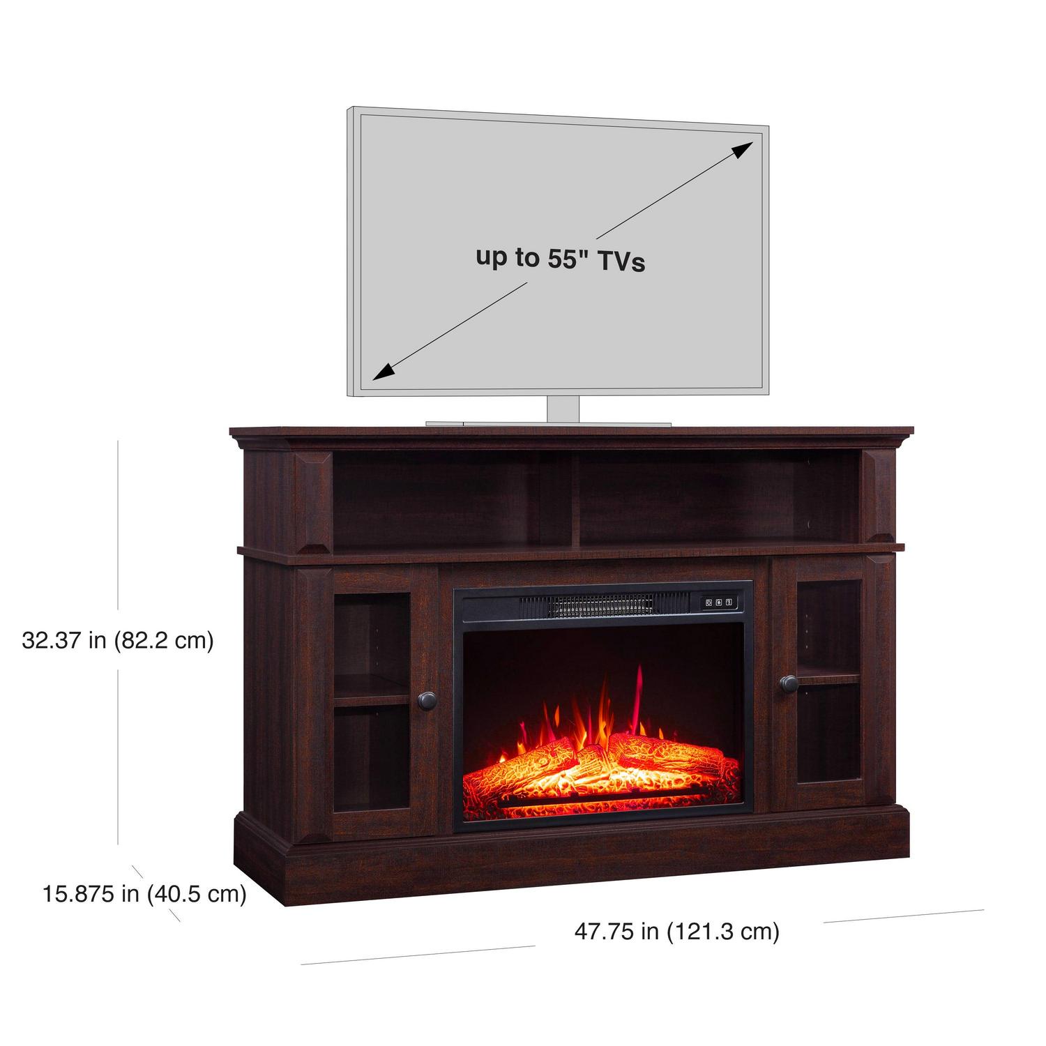 Whalen Furniture Barston Media Fireplace TV Stand for TVs up to 55a , Cherry Brown Finish