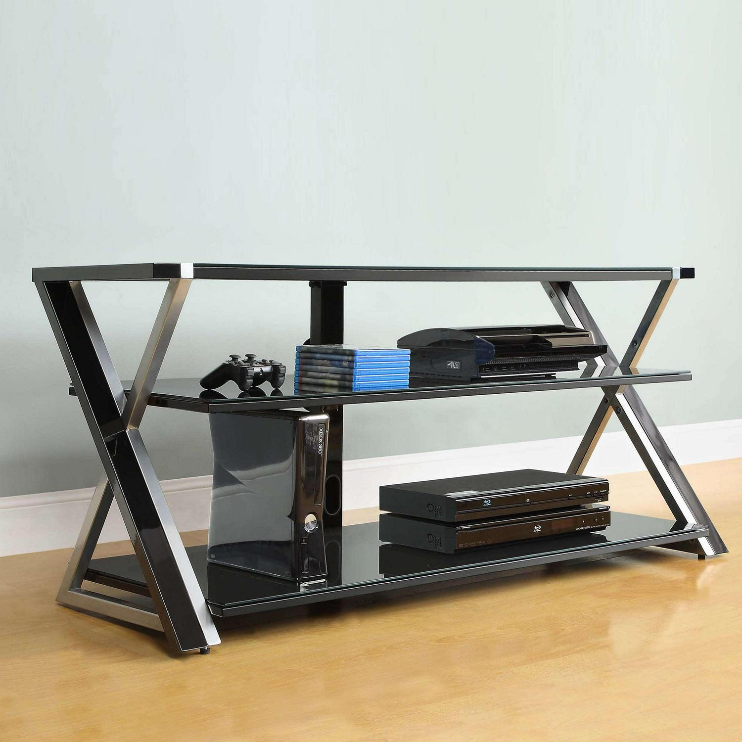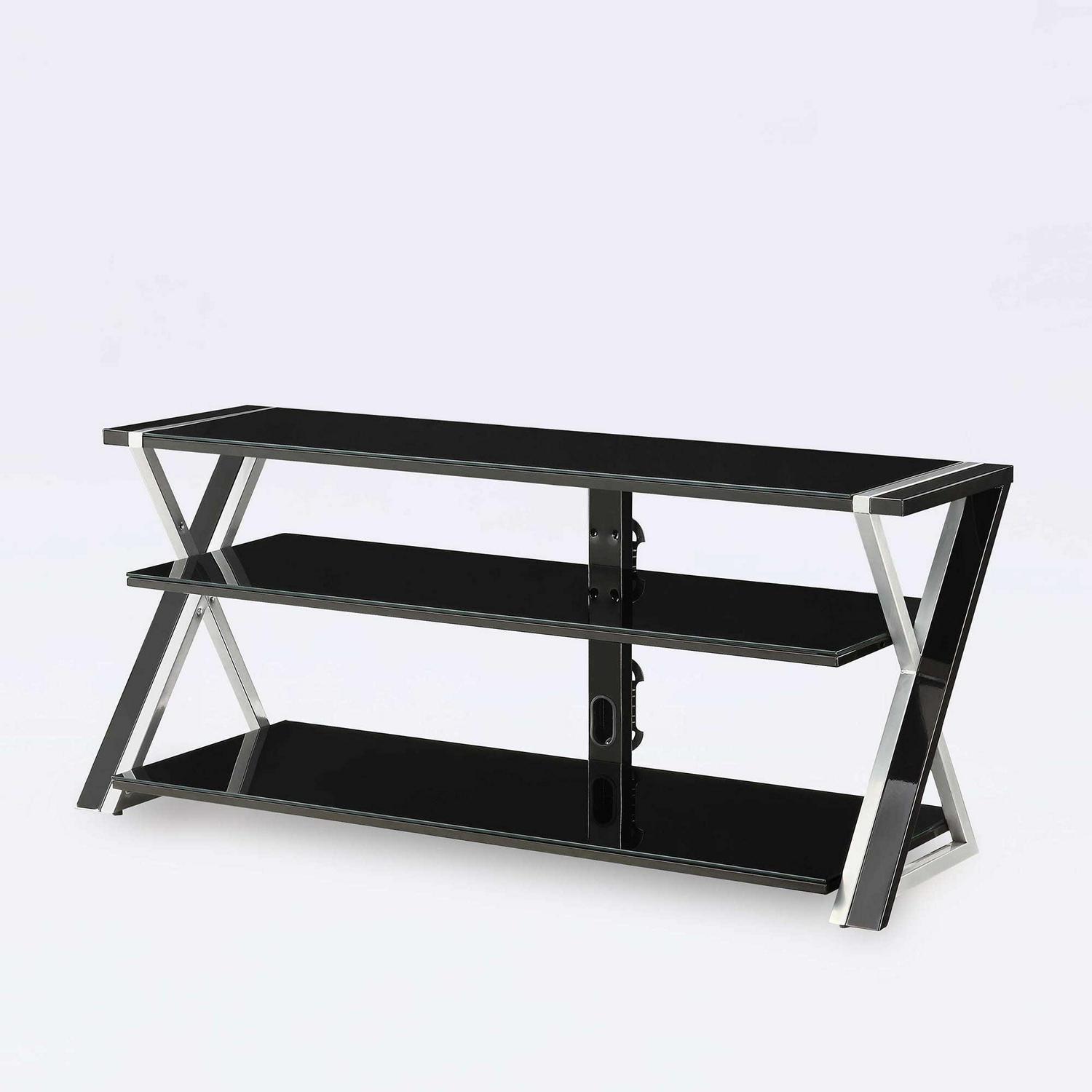 Whalen Black TV Stand for 60″ Flat Panel TVs with Tempered Glass Shelves: