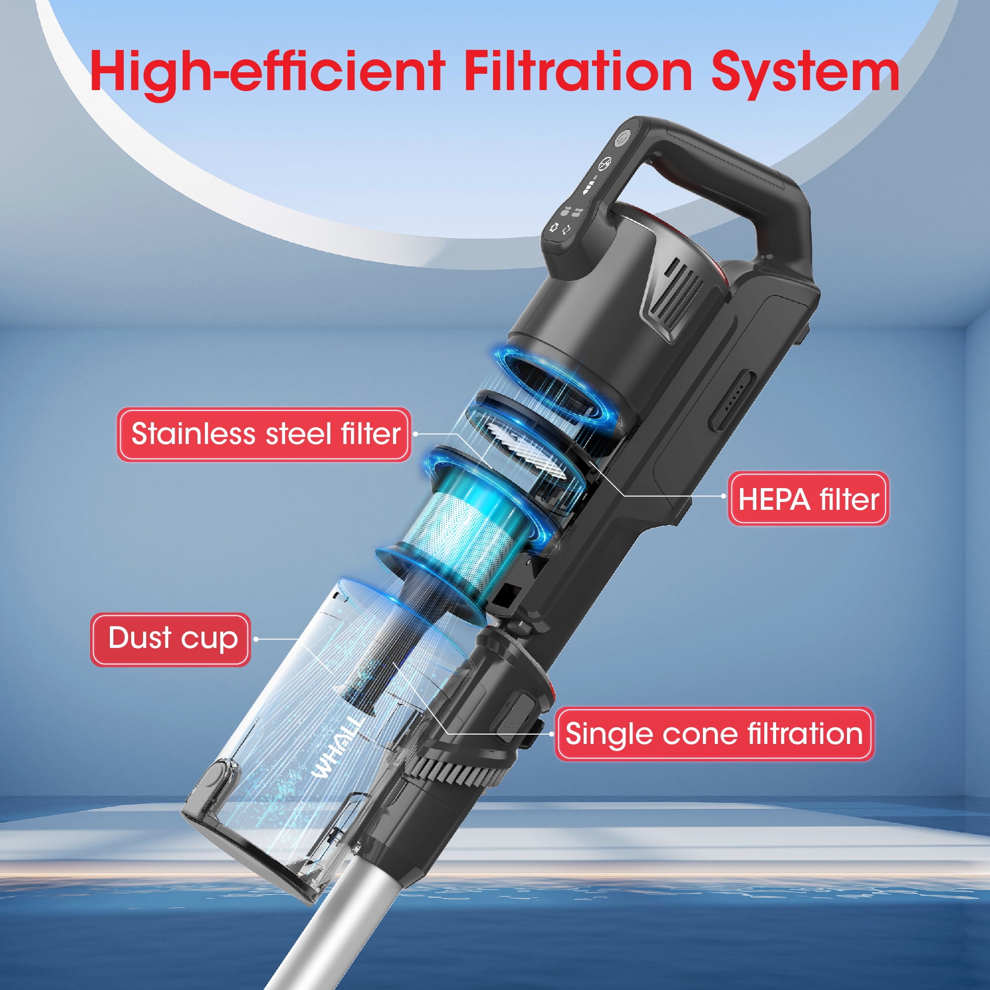 WHALL Cordless Vacuum, Portable Vacuum with 25KPA Suction, Fast Charging