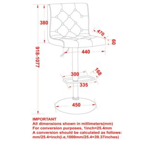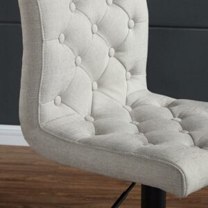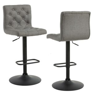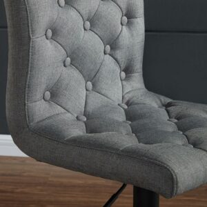 The WHI Dex Adjustable Upholstered Barstool – Set of 2 is a softer spin on industrial style. Each of this set s two stools boasts a round pedestal-style metal base in finished in matte black and trimmed with a foot rest; on top, a plushly padded seat refines the look. High-backed and armless, the swiveling seats are upholstered in textured fabric – choose from the available color options – with diamond seaming and deep button-trimmed tufts. Place the stools at a kitchen counter or your home bar – hydraulic lifts let you adjust the stools height for a perfect fit. Assembly is required, and a 90-day limited manufacturer s warranty is included.