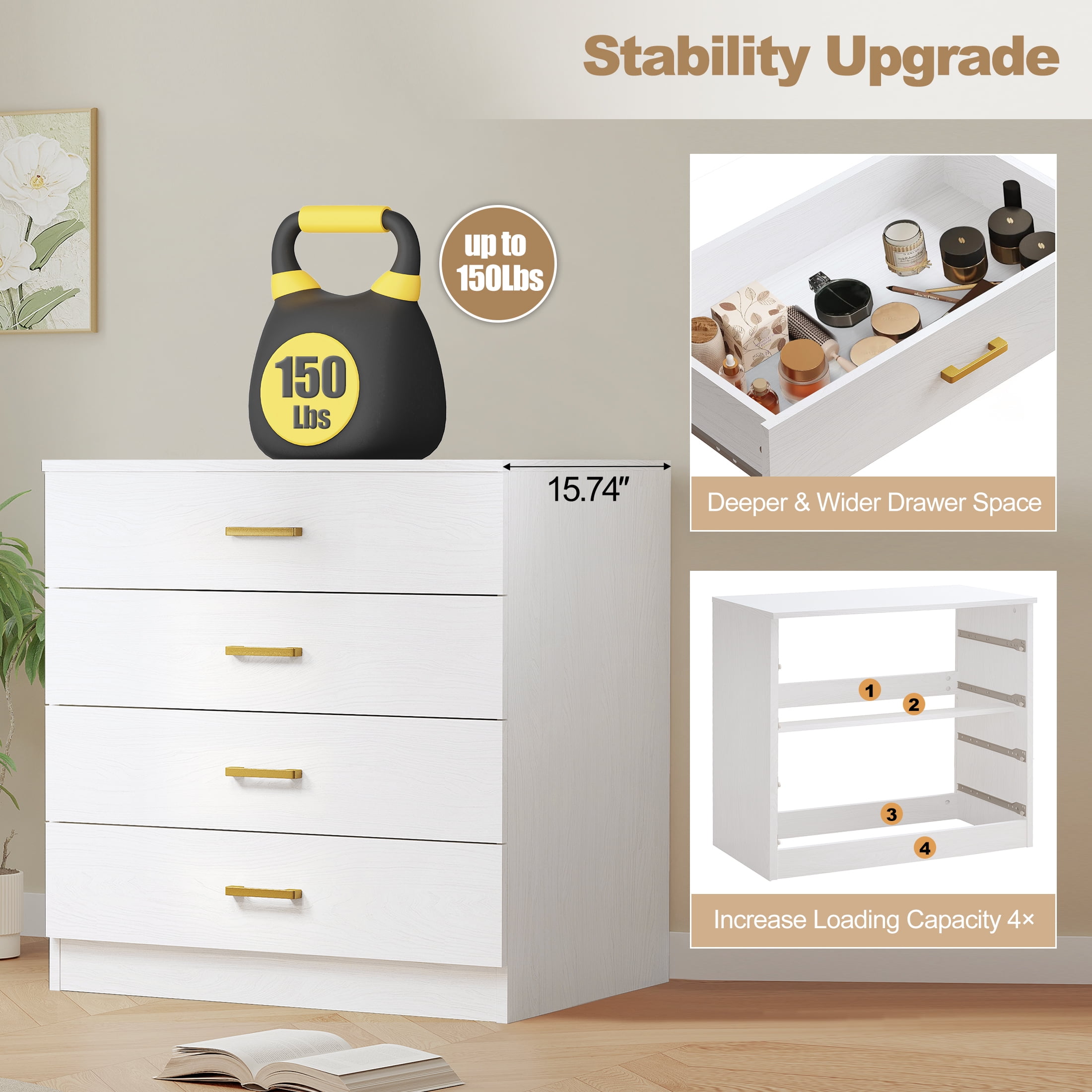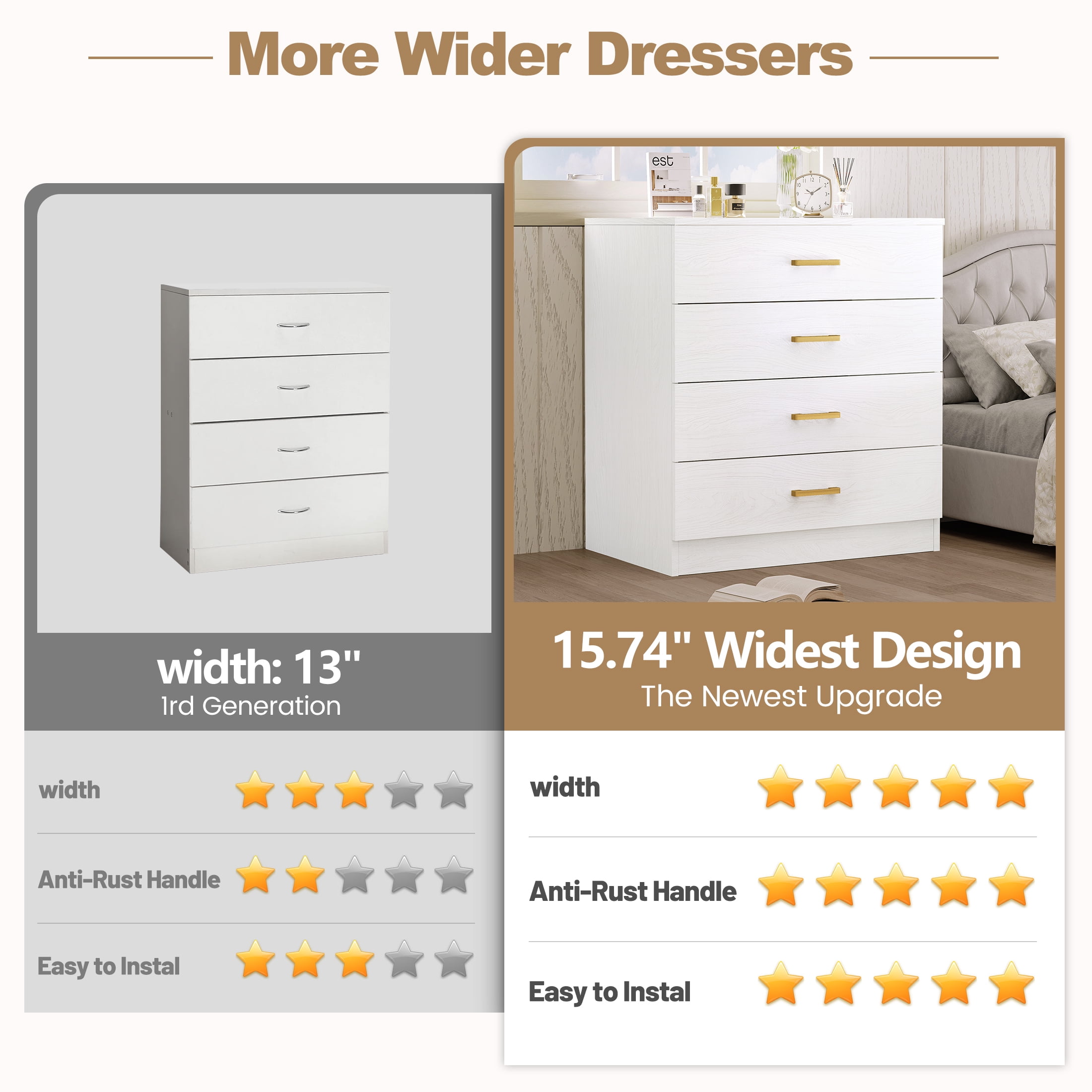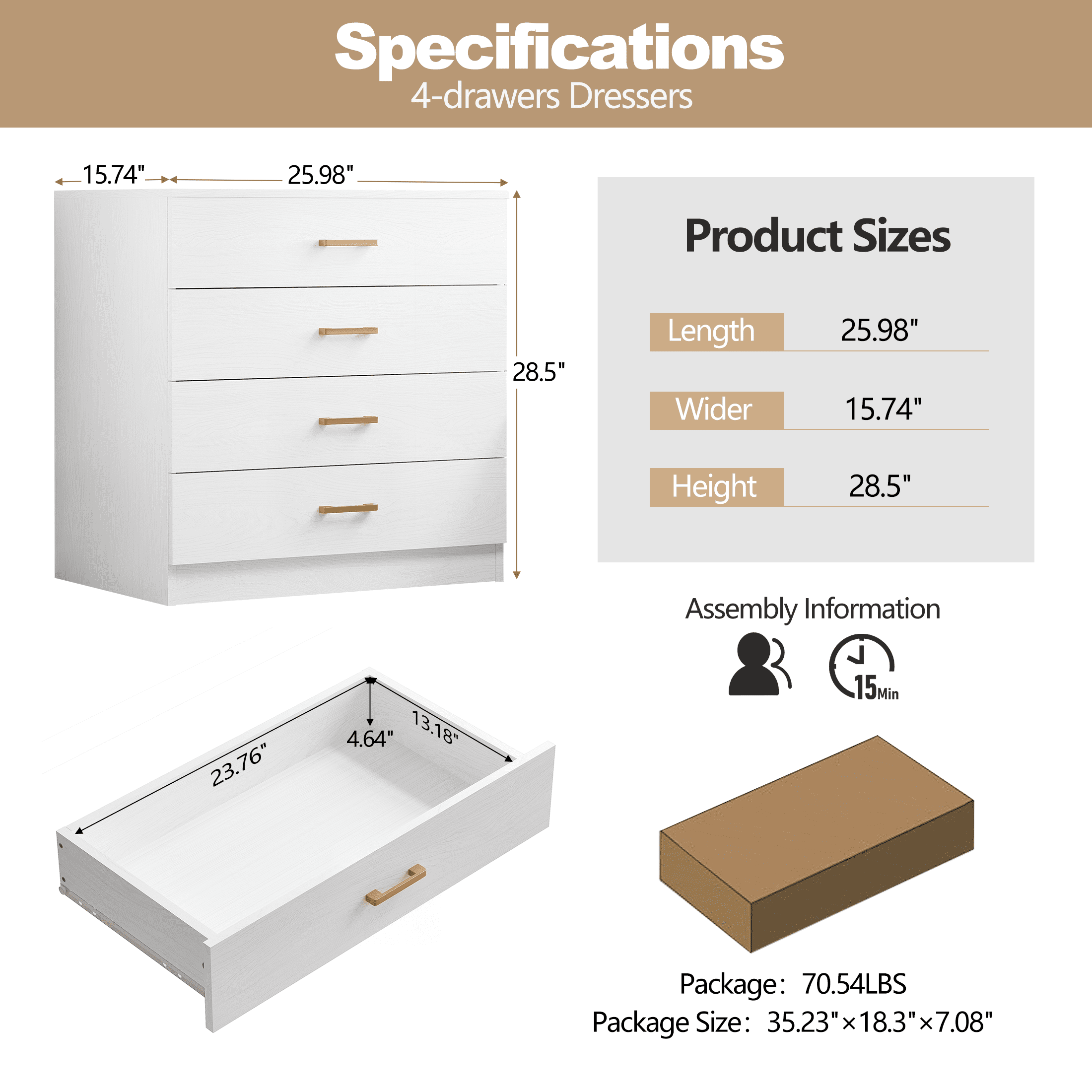 4 Drawer Dresser as the newest Stylish Design, which match perfectly with other Segmart storage towers. This chest of drawers is great for bedroom, closet, living room, hallway, dorm and office. The wood dressers for bedroom is ideal for organizing your daily necessities. WHY CHOOSE THIS UPGRADED PRODUCT? 1. Pay Attention to Our Upgraded Width — 15.74 inch 2. Add Design to Prevent Tipping — Safety for Children 3. Indispensable Load-bearing Capacity — 150LBS ??【White Dresser for Bedroom — Ample storage space】– Assembled dimension: 25.98″W x 15.74″D x 28.5″H. This wood dresser is designed with a spacious interior. Features 4 spacious drawers, this chest of drawers help you sort items by type. ??【150 lbs Load Capacity — Durable Construction】– The dressers & chests of drawers is all made of solid wood, which is very strong and stable. Each wood drawer can hold up to 45lbs, and the wood tabletop can hold up to 150 lbs, which make it more stable and safe. ⏱️【Easy Assembly — Just 20 Minutes】– With detailed instructions, you can have your dresser set up in 20 minutes. Our package comes with instructions and tools required for installation. ⚪【Classic Chest of Drawers — Two Colors to Choose】– We offer 2 types of drawers for you to choose. The bedroom dresser is in a simple and modern style, which is very classic. It can be matched with any home style. ??【Elaborate Production — Without Noise】– Each drawer is equipped with metal handle and slide rail, which can help you pull the drawer out smoothly without making noise. Specifications: Item Name: 4-Drawer Dressers Table Dimension: 35.03″ x 18.11″ x 7.87″(L x W x H) Package Weight: 70Ibs Package Includes: 1 x 4-Drawer Dressers 1 x Instruction