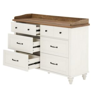 White 6 Drawer Dresser with Changing Table Top, Chest of Drawers Bedroom Dresser, 47 Inch
