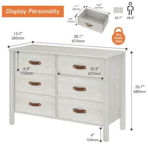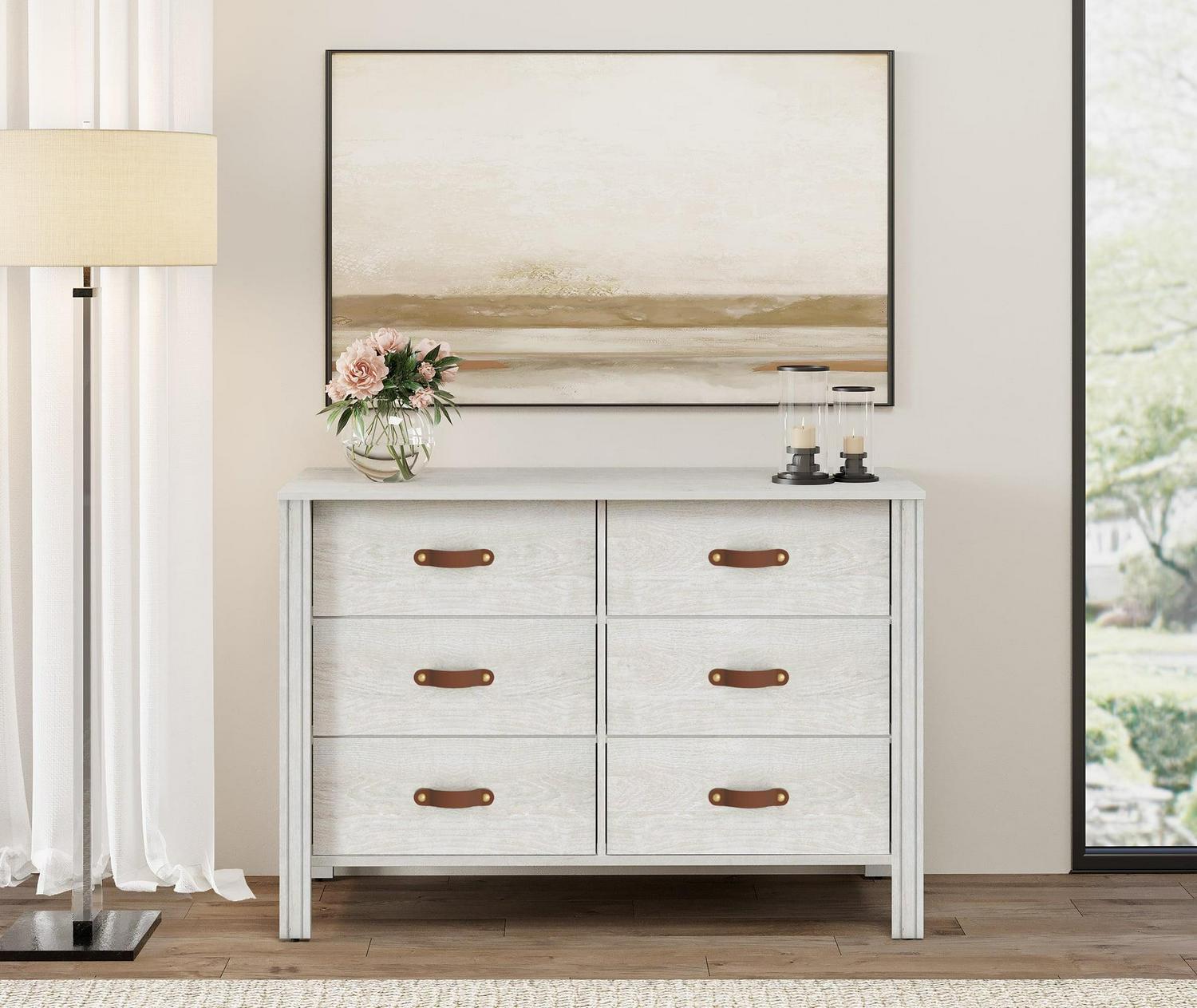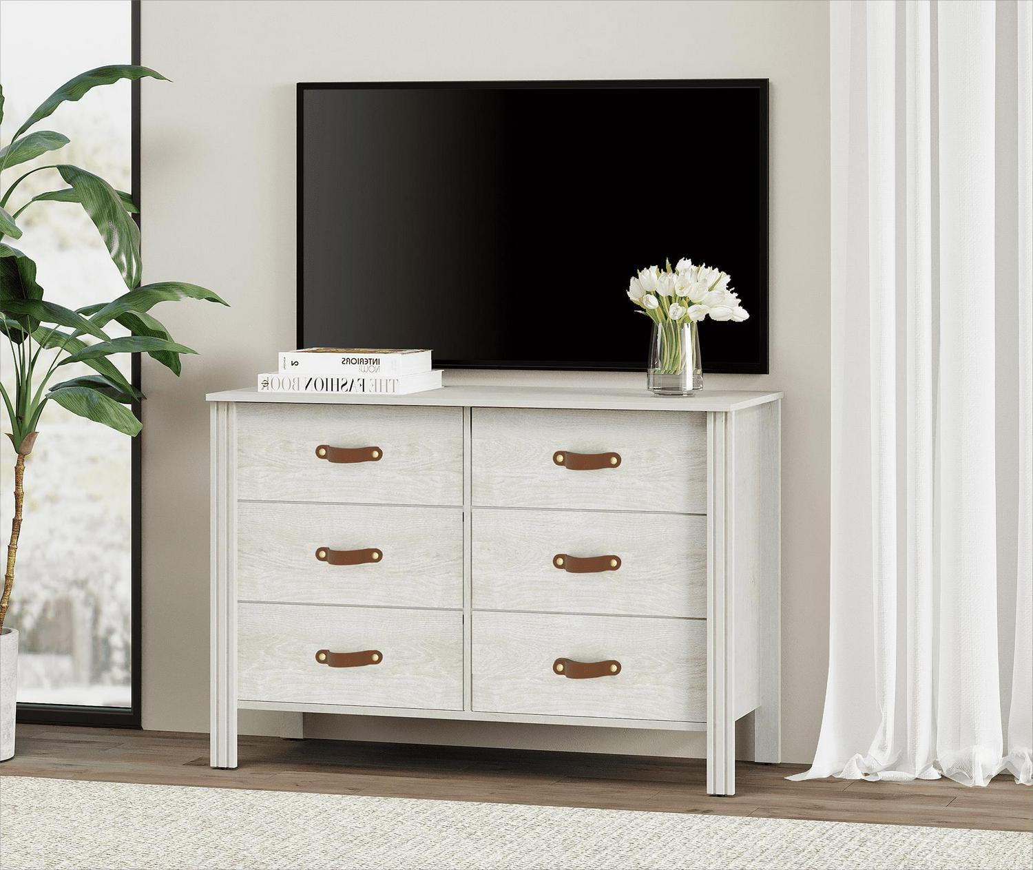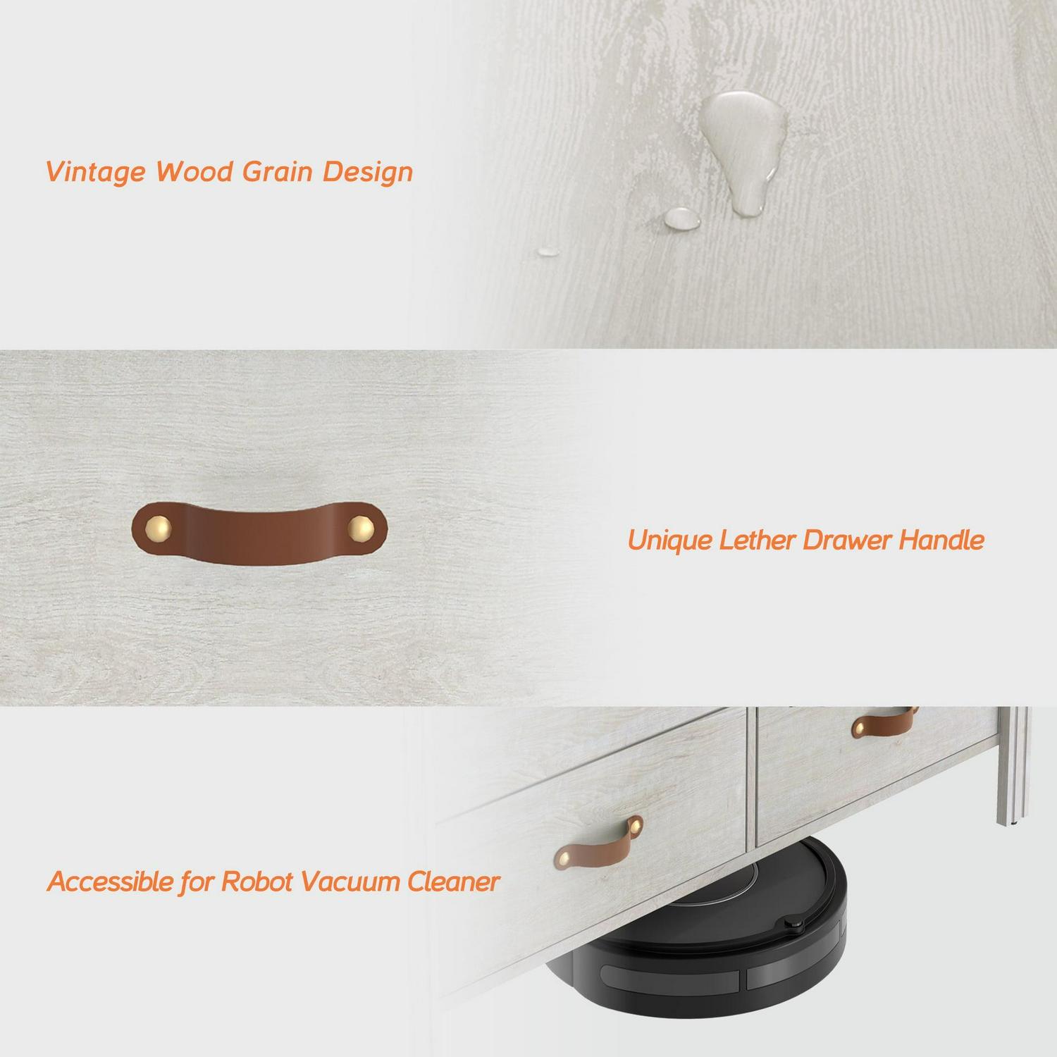 6 Drawer Dresser TV Stand The white wood dresser comes with a modern design, which can be compatible with different room styles and decoration, adds a modern and stylish feeling to your living space, highlighting the style of your furniture, and offers a simple storage idea for your room.
