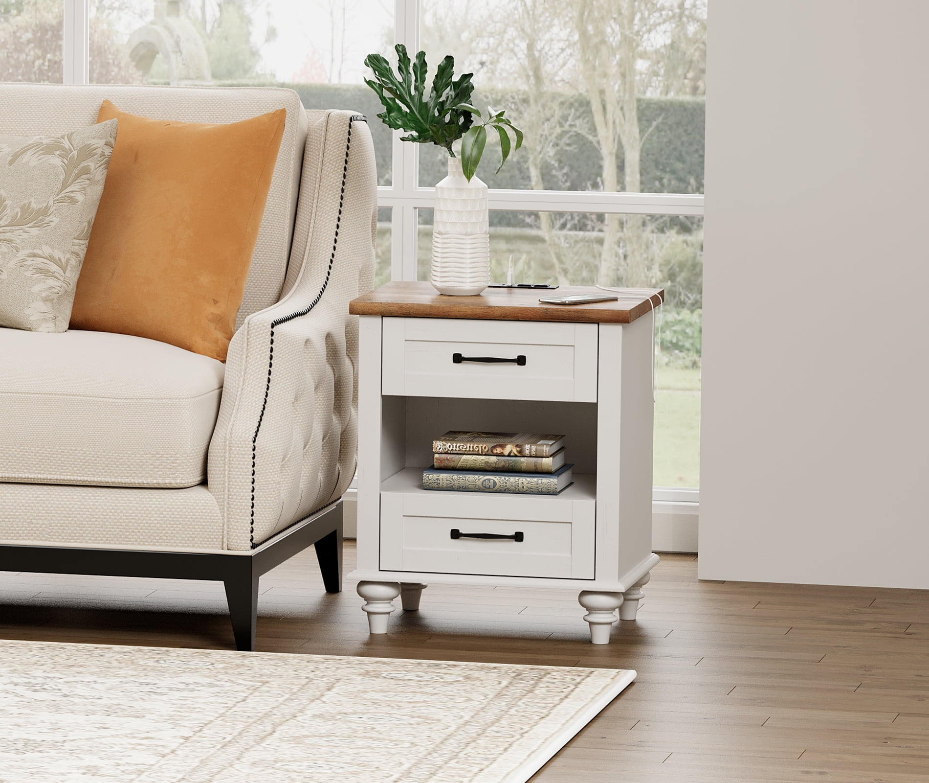 Enjoy a clutter-free bedside space with our charging nightstand. 2 drawers store your bedside and sofa side items well and protect your privacy. This nightstand with charging station arranged with 2 Standard AC Outlets and 2 USB ports, making the desk neater while providing convenience for charging options for all your gadgets.