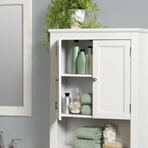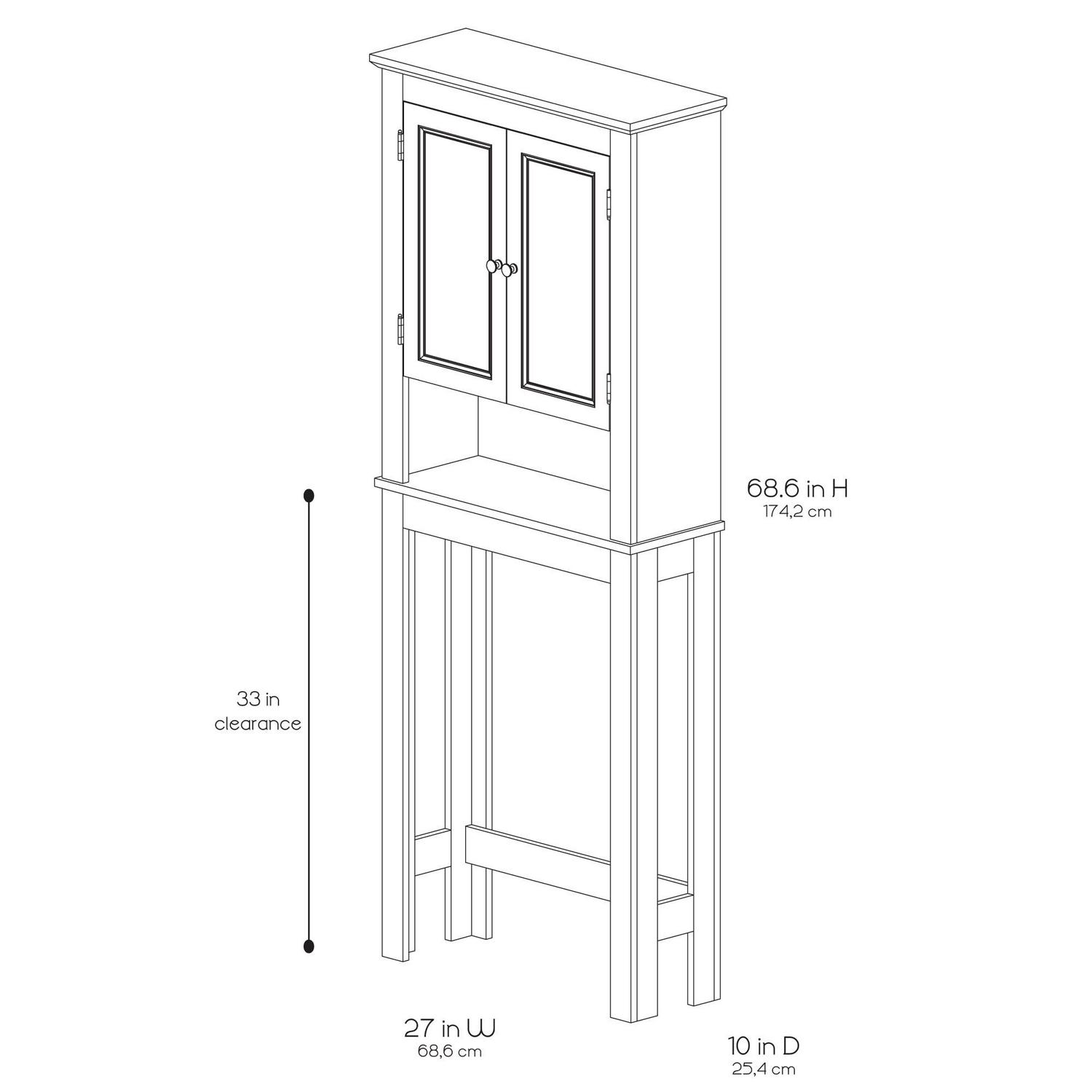 The Zenna Home Custom Suite Over-the-Toilet Spacesaver is designed to provide functional and fashionable storage inside your bathroom. The space-saving unit offers abundant cabinet space with a clean white finish and brushed nickel hardware. Its 33-inch clearance from ground to bottom shelf allows it to fit over most standard height and taller modern toilets. The bathroom spacesaver’s open shelf is ideal for linens or decorative bath accessories. Two levels of storage inside the cabinet provide more room and the ability to customize the space thanks to an adjustable shelf. Installation is easy, with instructions included. Use the Custom Suite Spacesaver on its own or pair it with the coordinating Zenna Home Custom Suite Linen Cabinet.