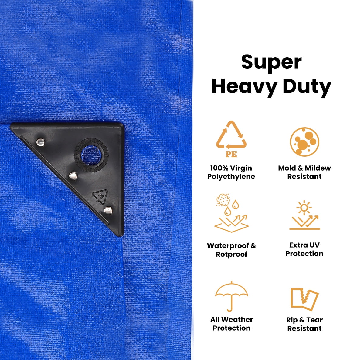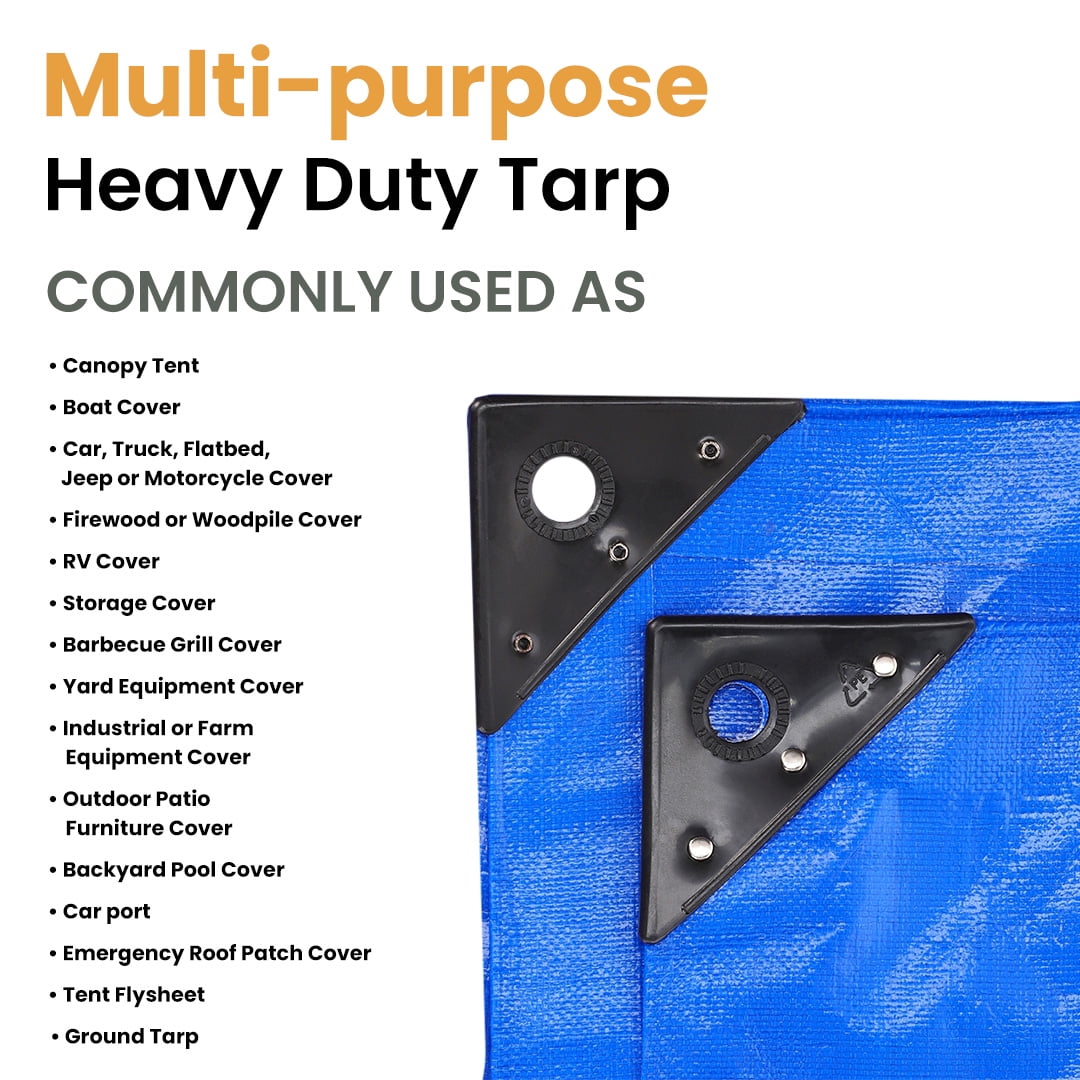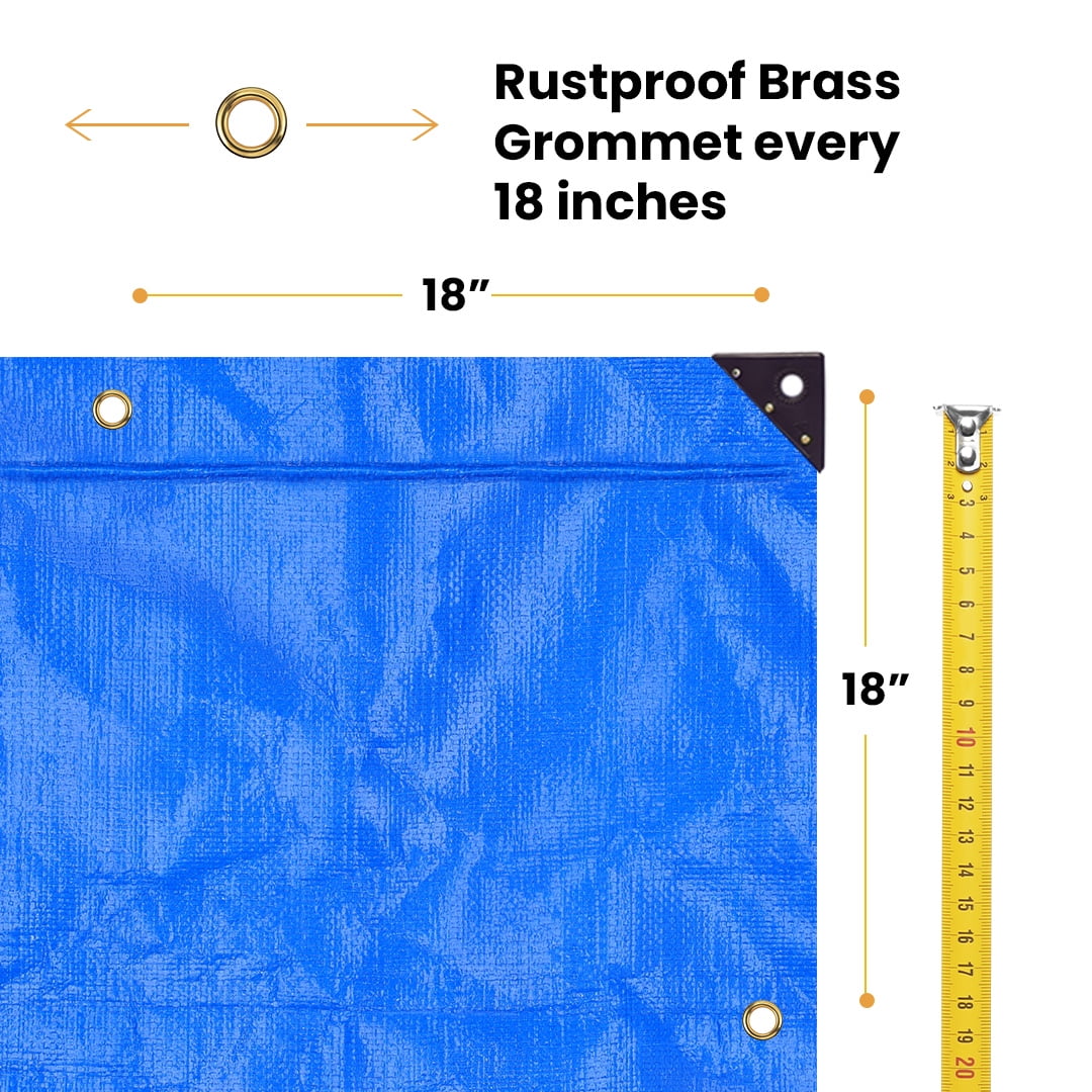 Super Heavy Duty Poly Tarp: Thick, Waterproof, UV Resistant, Rot, Rip and Tear Proof Tarpaulin with Rustproof Brass Grommets and Reinforced Edges. These top-rated poly tarps provide superior protection for your belongings. They’re extra-reinforced, mold resistant and odorless, so they’re built to last.
