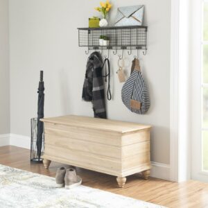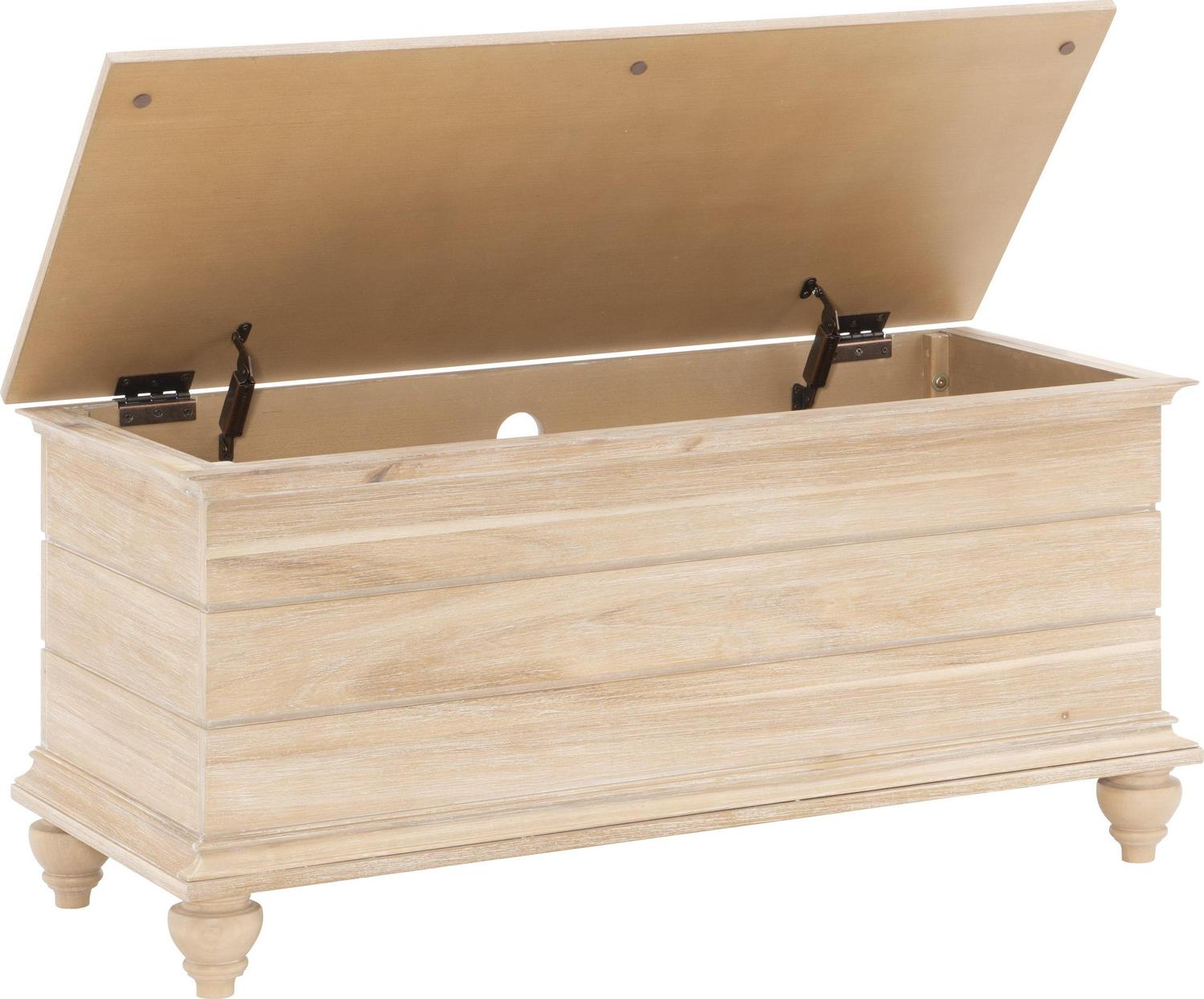 An updated classic, this Powell Whitehurst cedar chest in a natural finish is very versatile, creating seating and storage to any room in the home. Blending style and function with long plank styling, turned legs, decorative molding, and a finish that brings out the natural wood grain. The top opens wide to reveal ample storage space and is cedar lined. Cedar is especially beneficial for storing your favorite fabric items including heirlooms. Safety is a priority with child safe hinges and breath holes. Some assembly required.