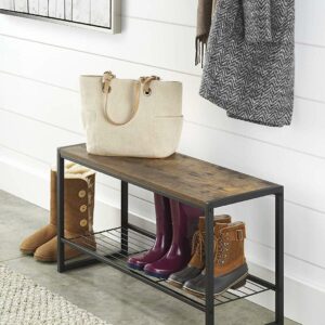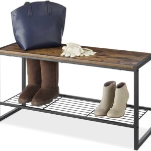 Whitmor 6764-9965-SIOC Modern Industrial Entryway Bench w/Shoe Storage – Brown
