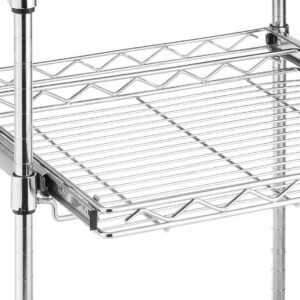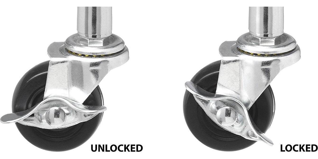 – Made with a heavy-duty, chromed steel frame and shelves. Commercial-grade locking wheels are also included.