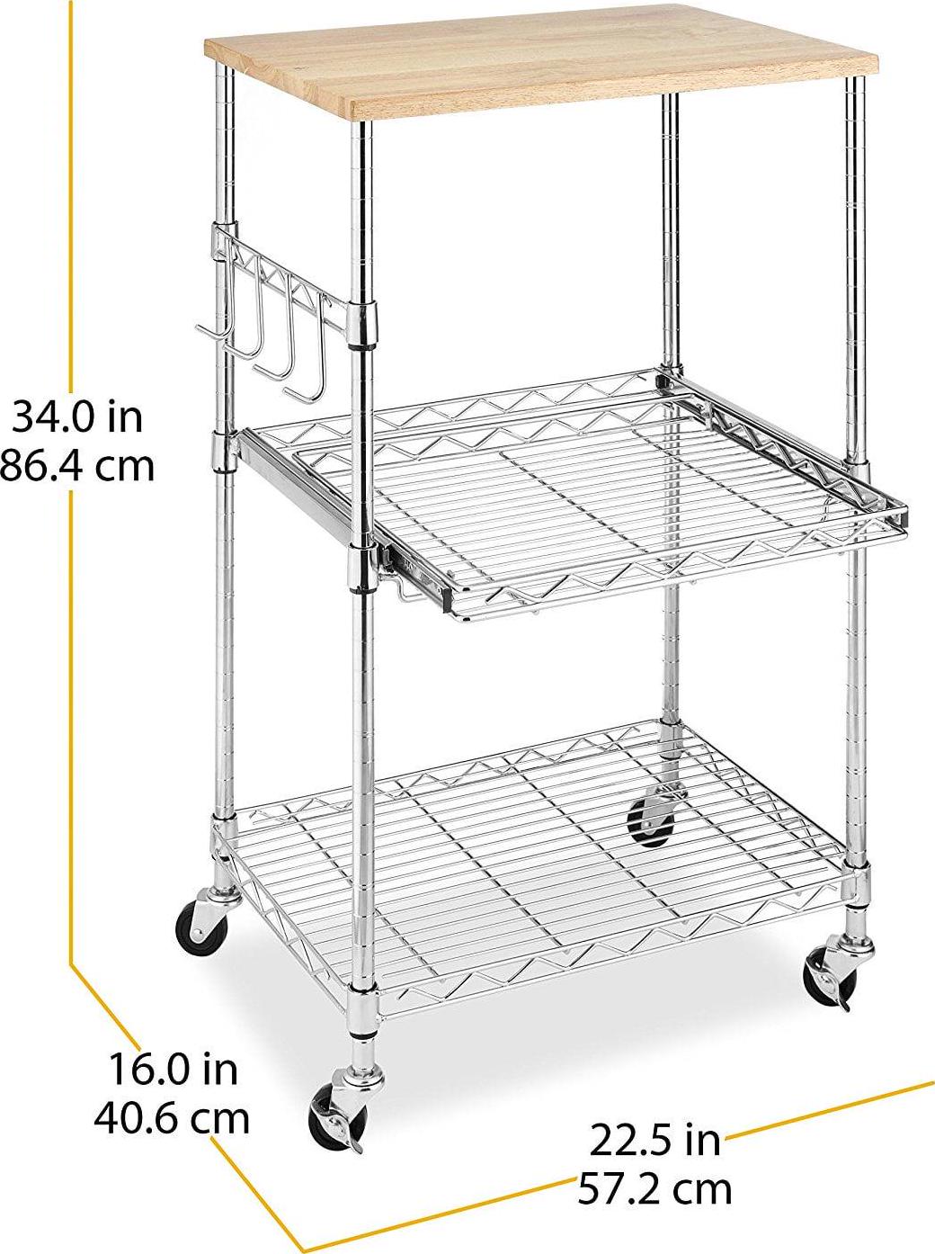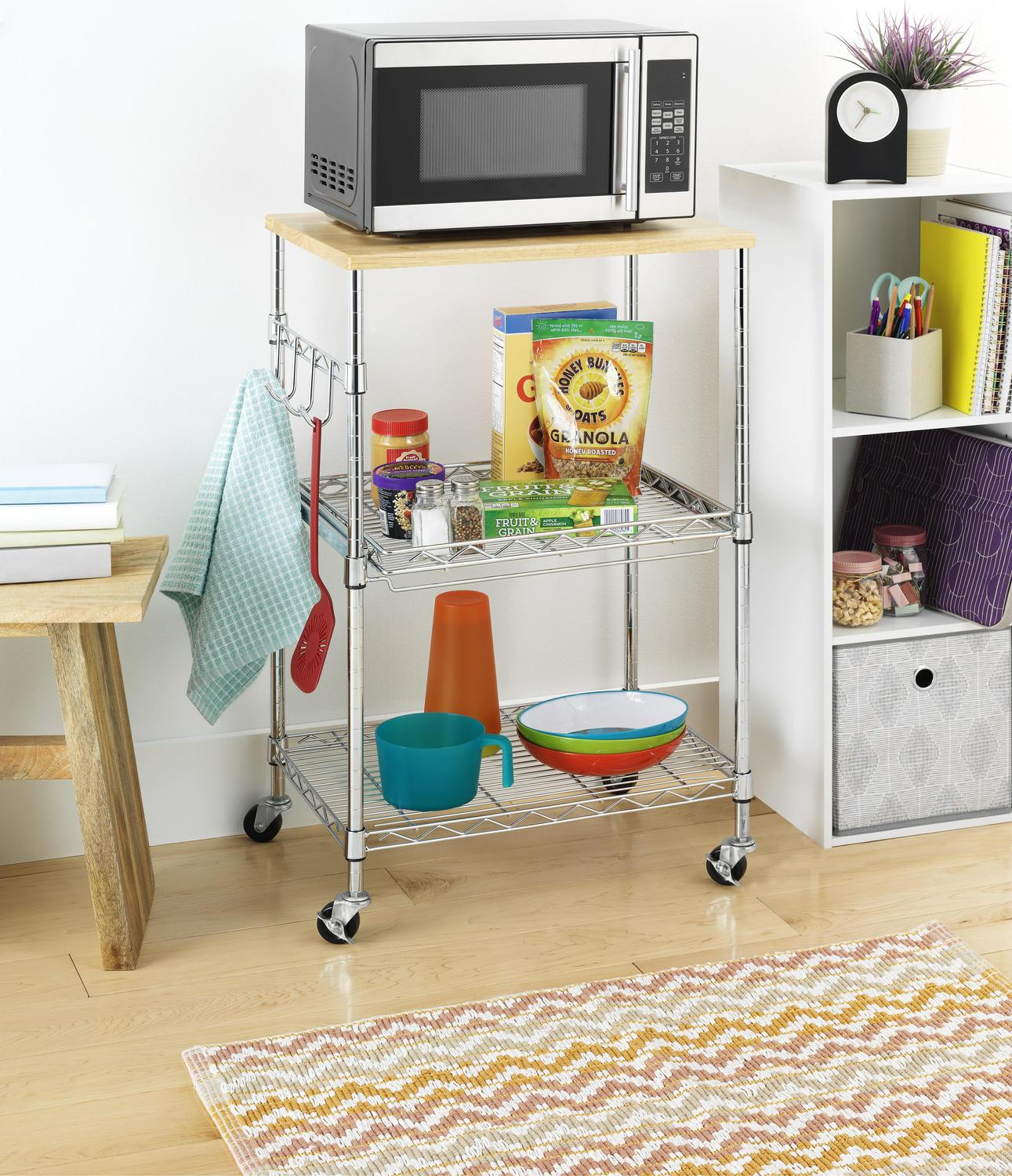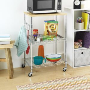 Whitmor Supreme Kitchen Storage Microwave Cart – Wood and Chrome
